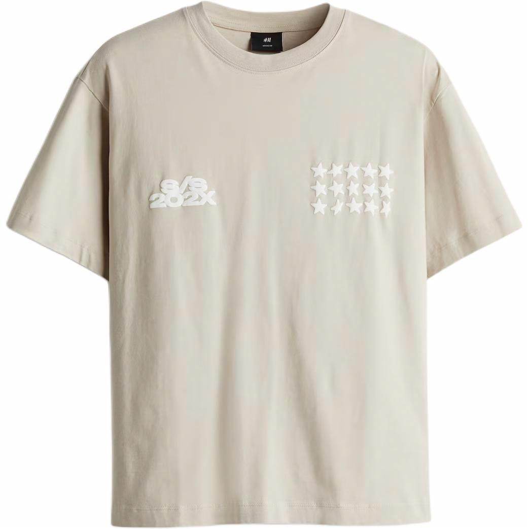 Эта мужская футболка с короткими рукавами и круглым вырезом выполнена в бежевом цвете и украшена принтом с буквами. Свободный крой обеспечивает комфорт и легкость при носке, что делает её отличным выбором для повседневного использования. Легкая ткань позволяет коже дышать, а универсальный стиль позволяет легко сочетать её с джинсами или шортами, добавляя стильный акцент в мужской гардероб.