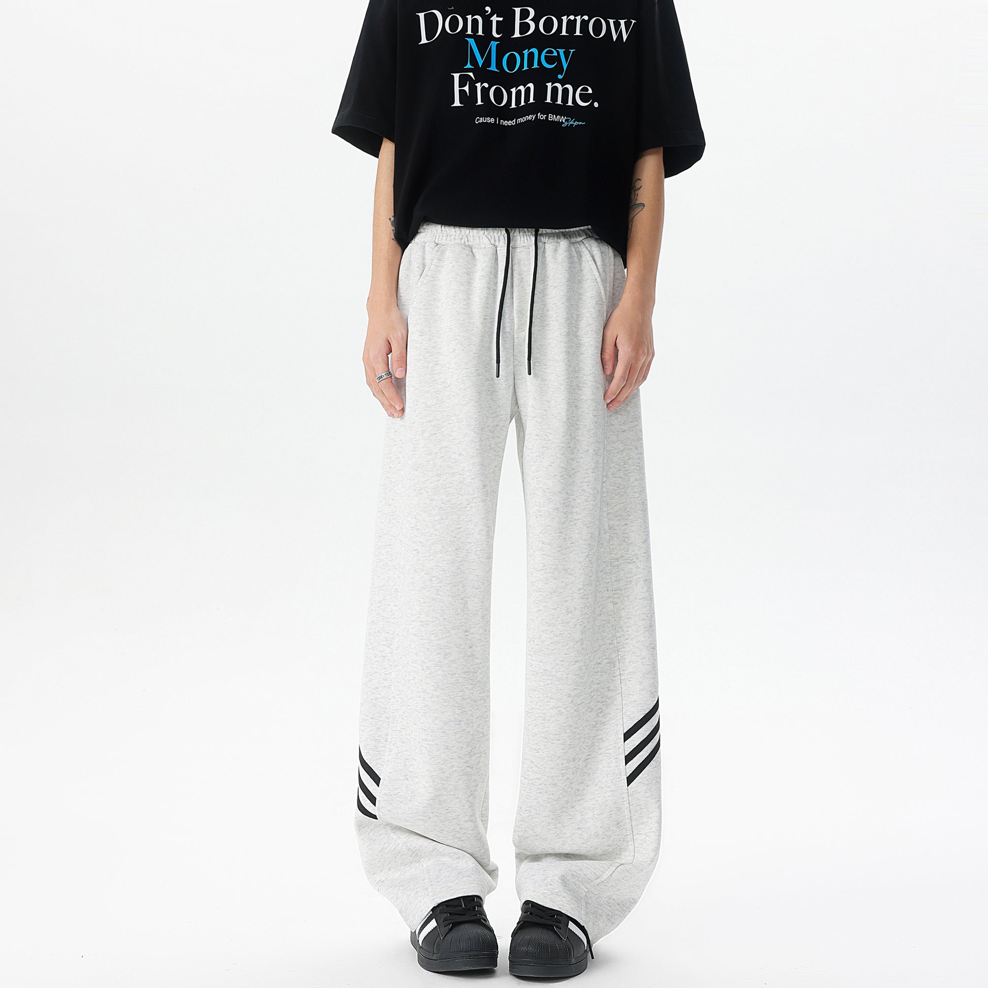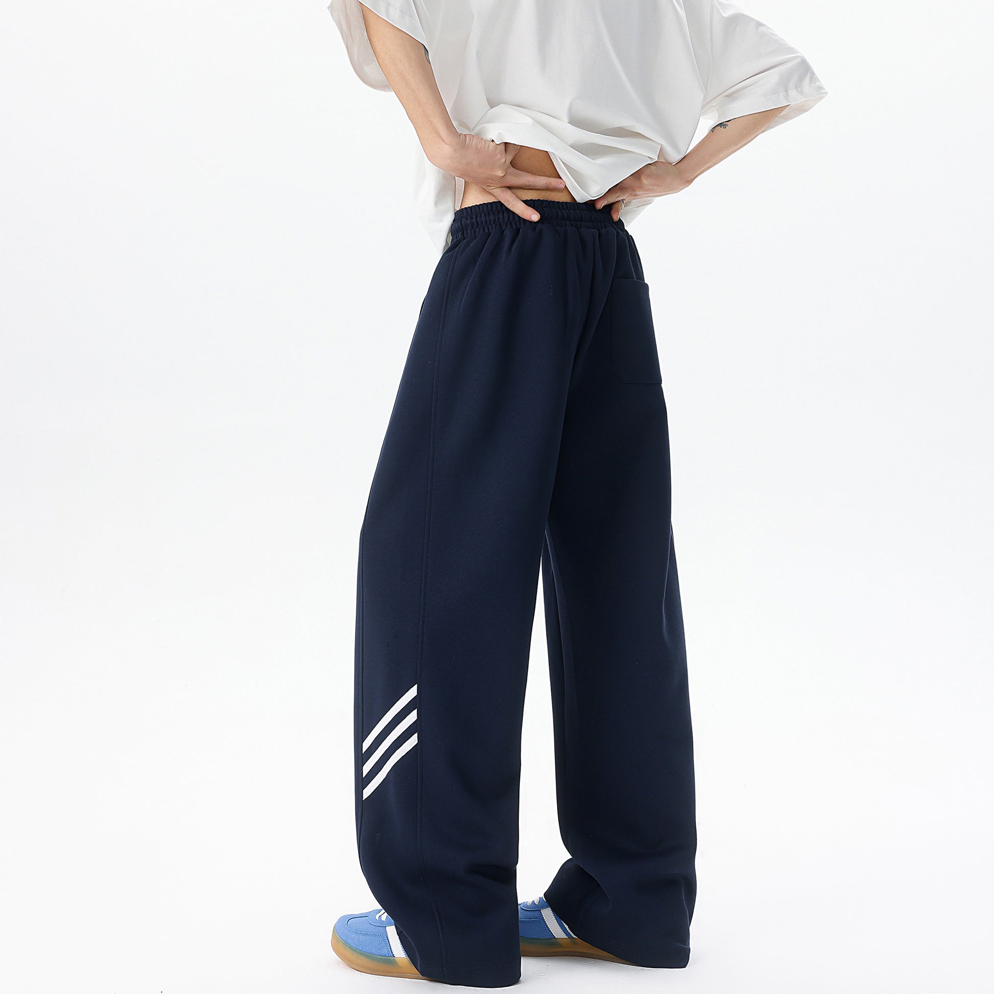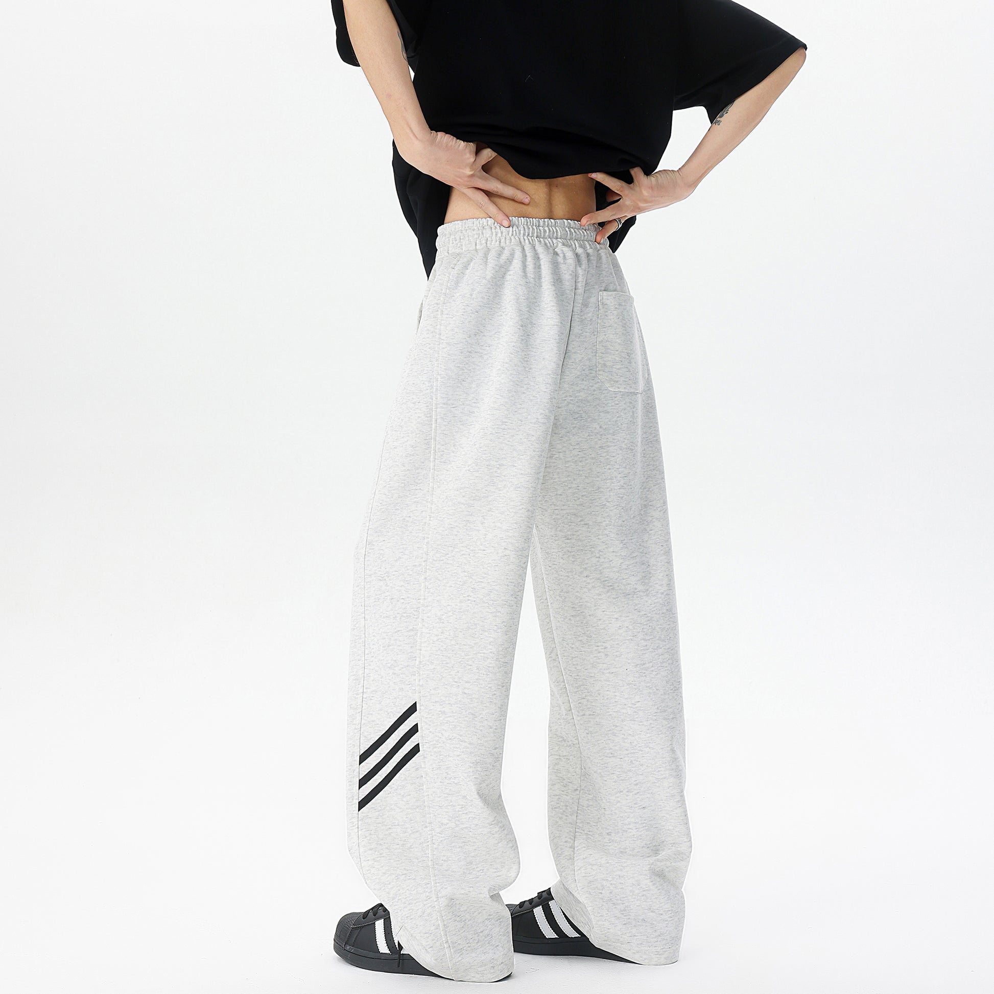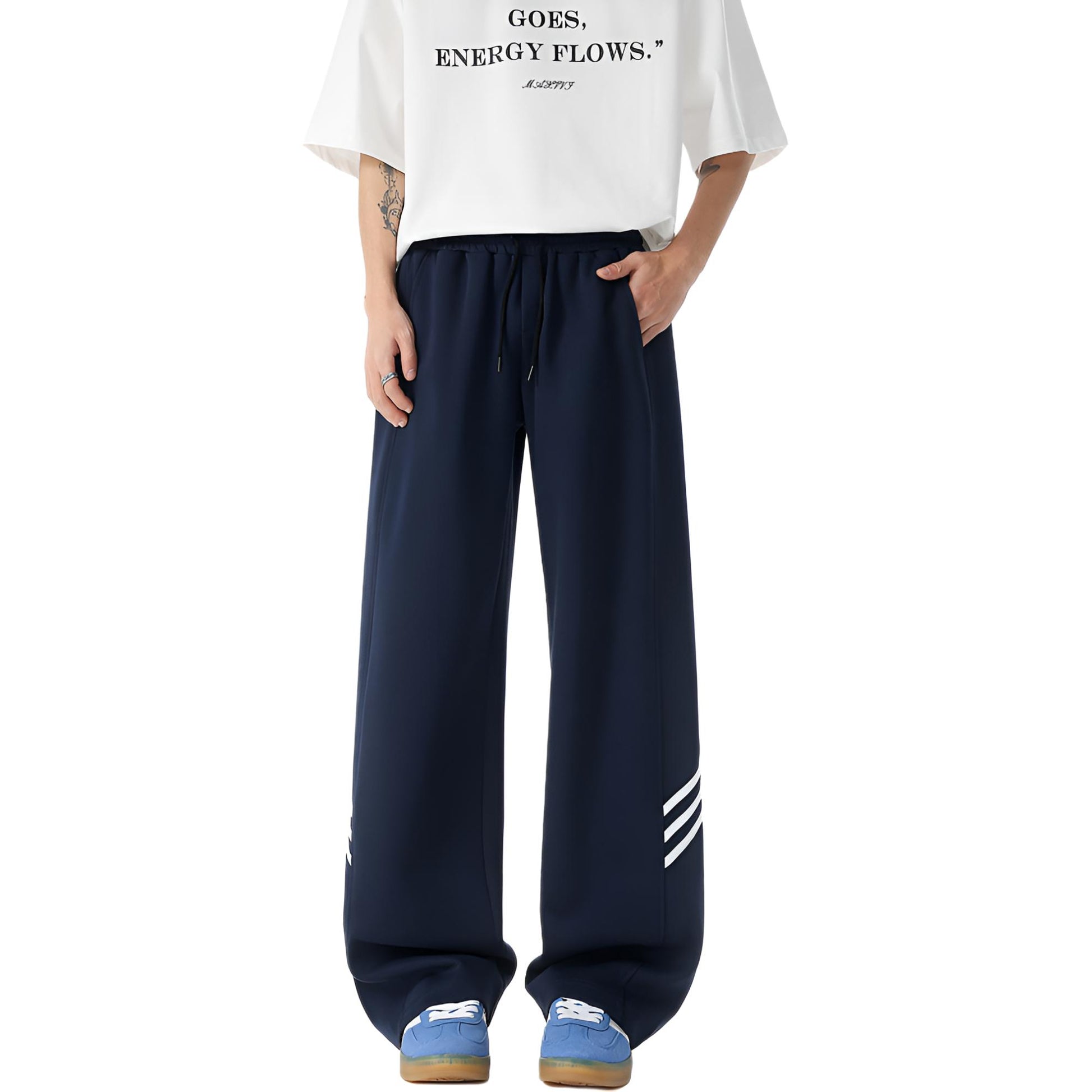 Свободные спортивные брюки H.V.G.A в стиле американского стритвира с прямым кроем и боковыми полосами. Универсальная модель с поясом на завязке подходит для повседневного образа и активного отдыха.