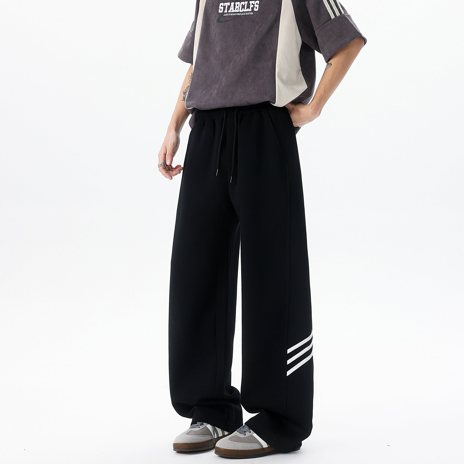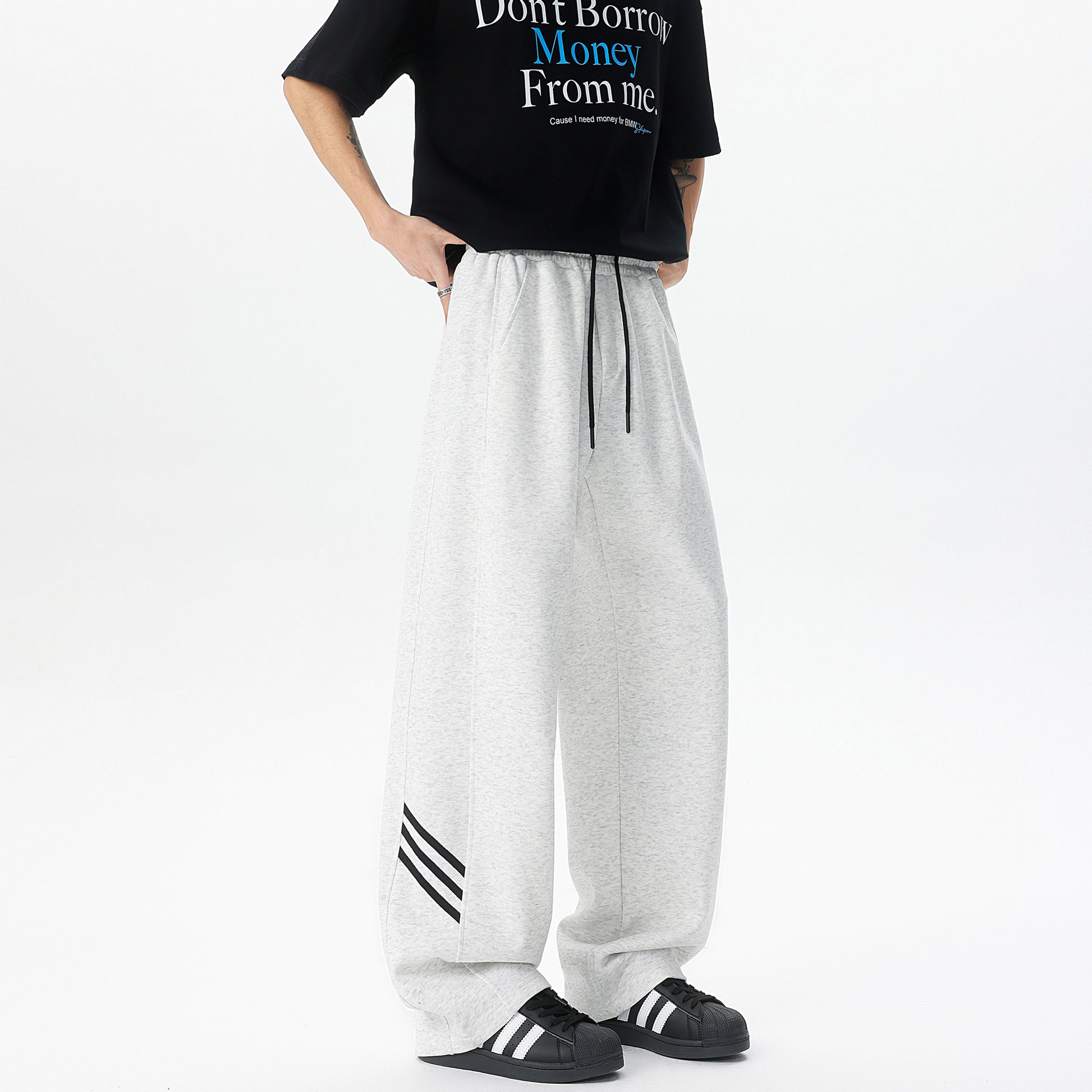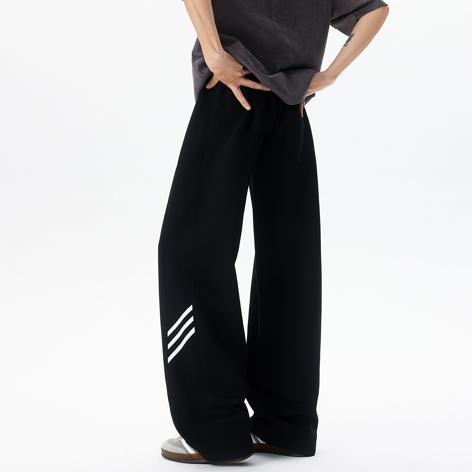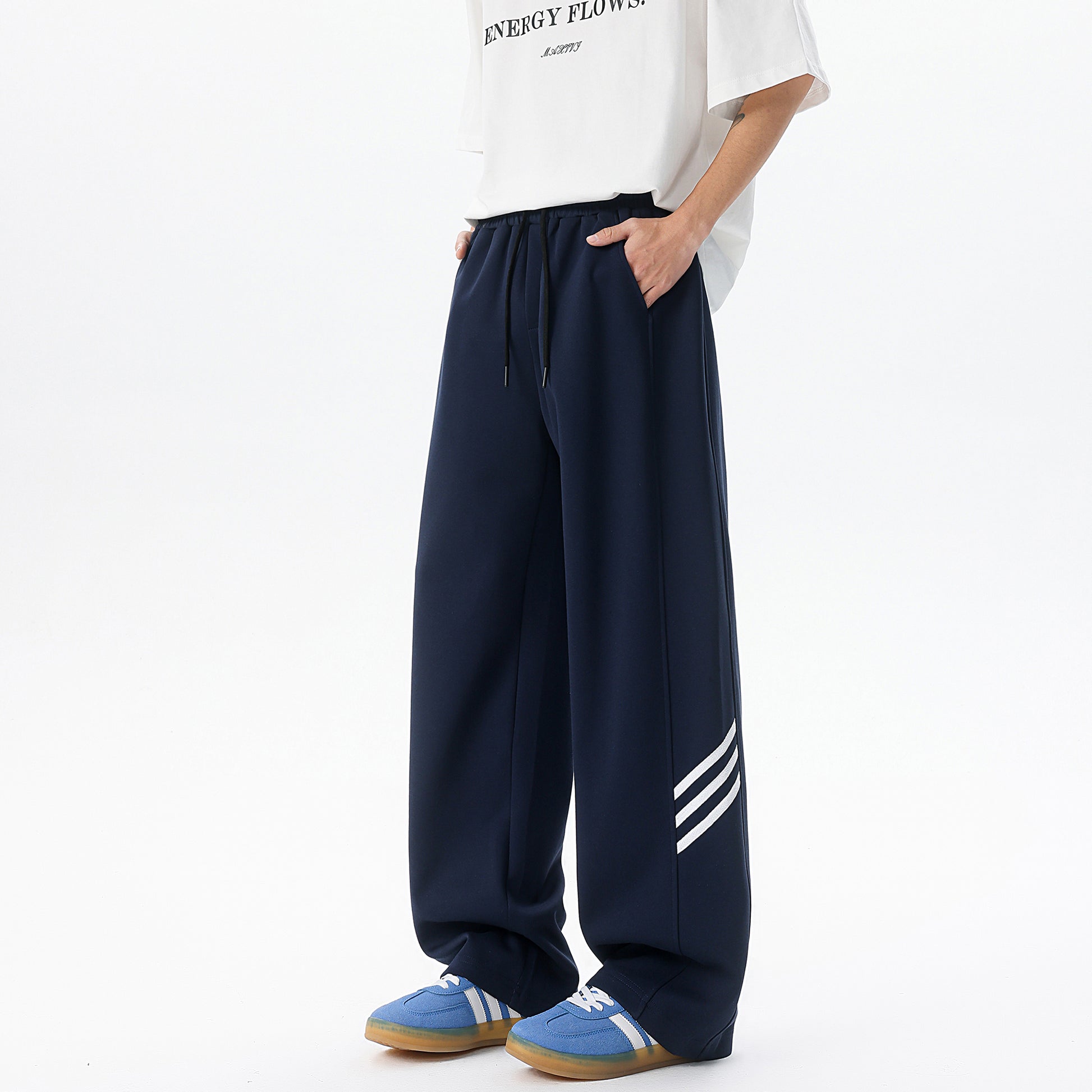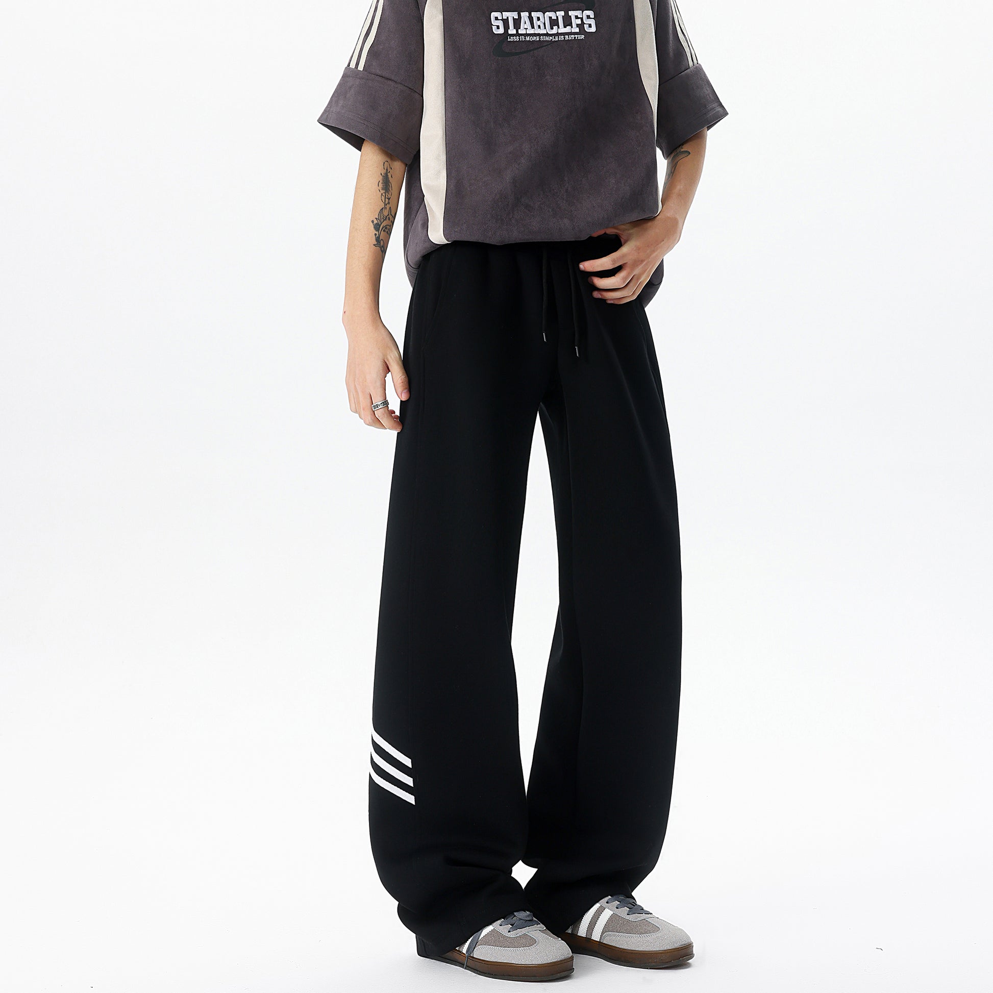 Свободные спортивные брюки H.V.G.A в стиле американского стритвира с прямым кроем и боковыми полосами. Универсальная модель с поясом на завязке подходит для повседневного образа и активного отдыха.