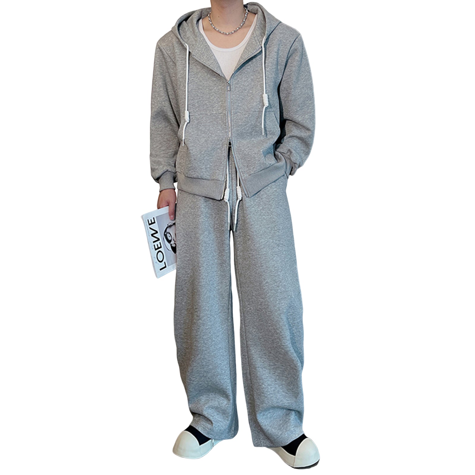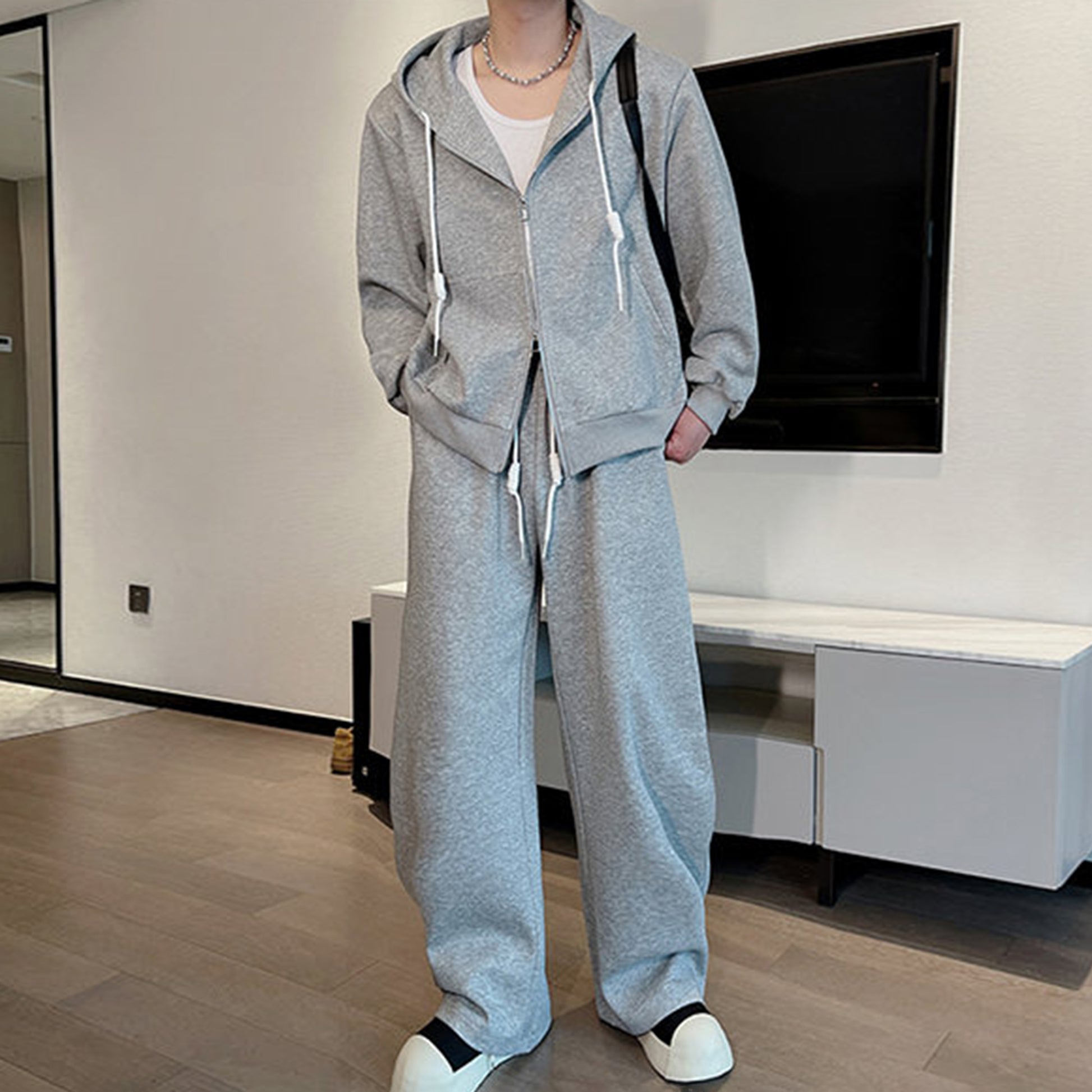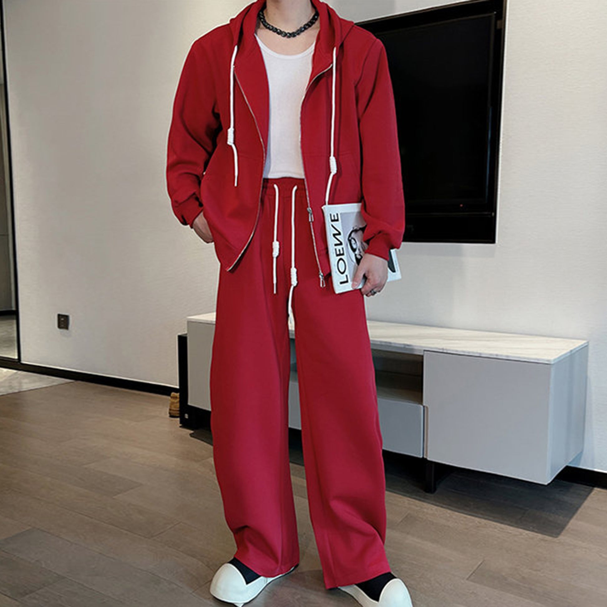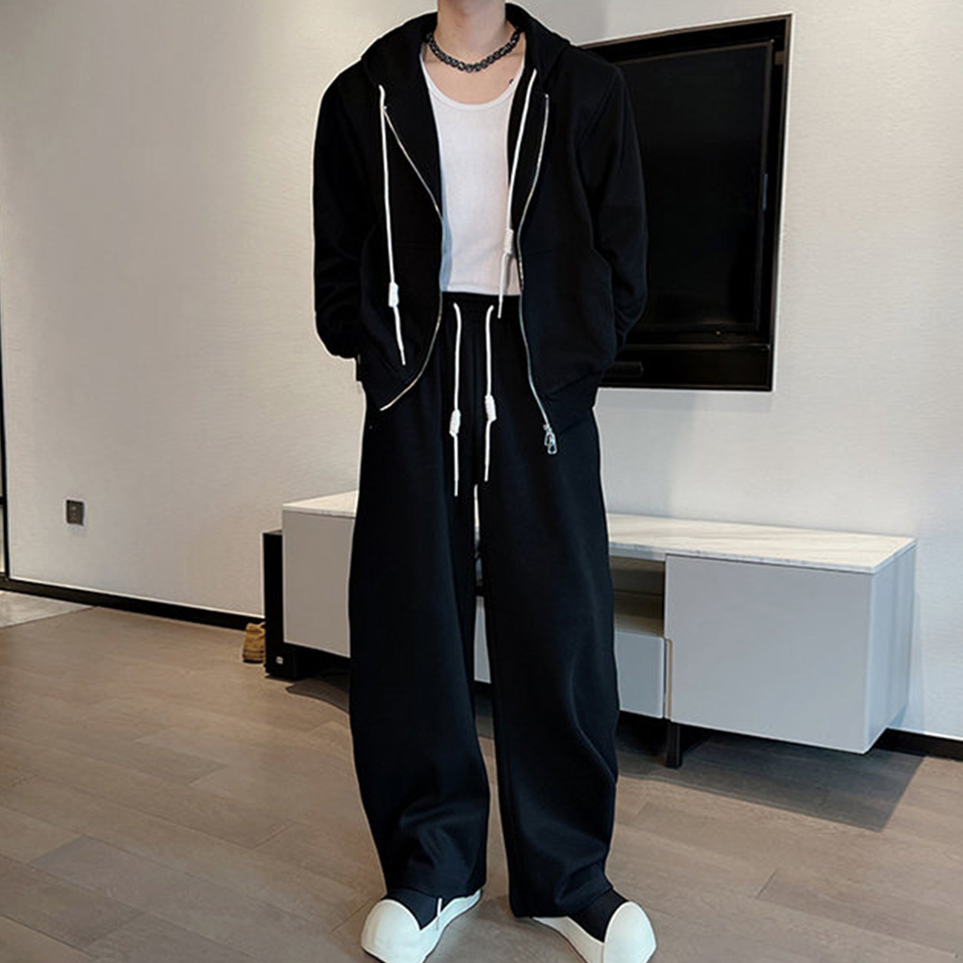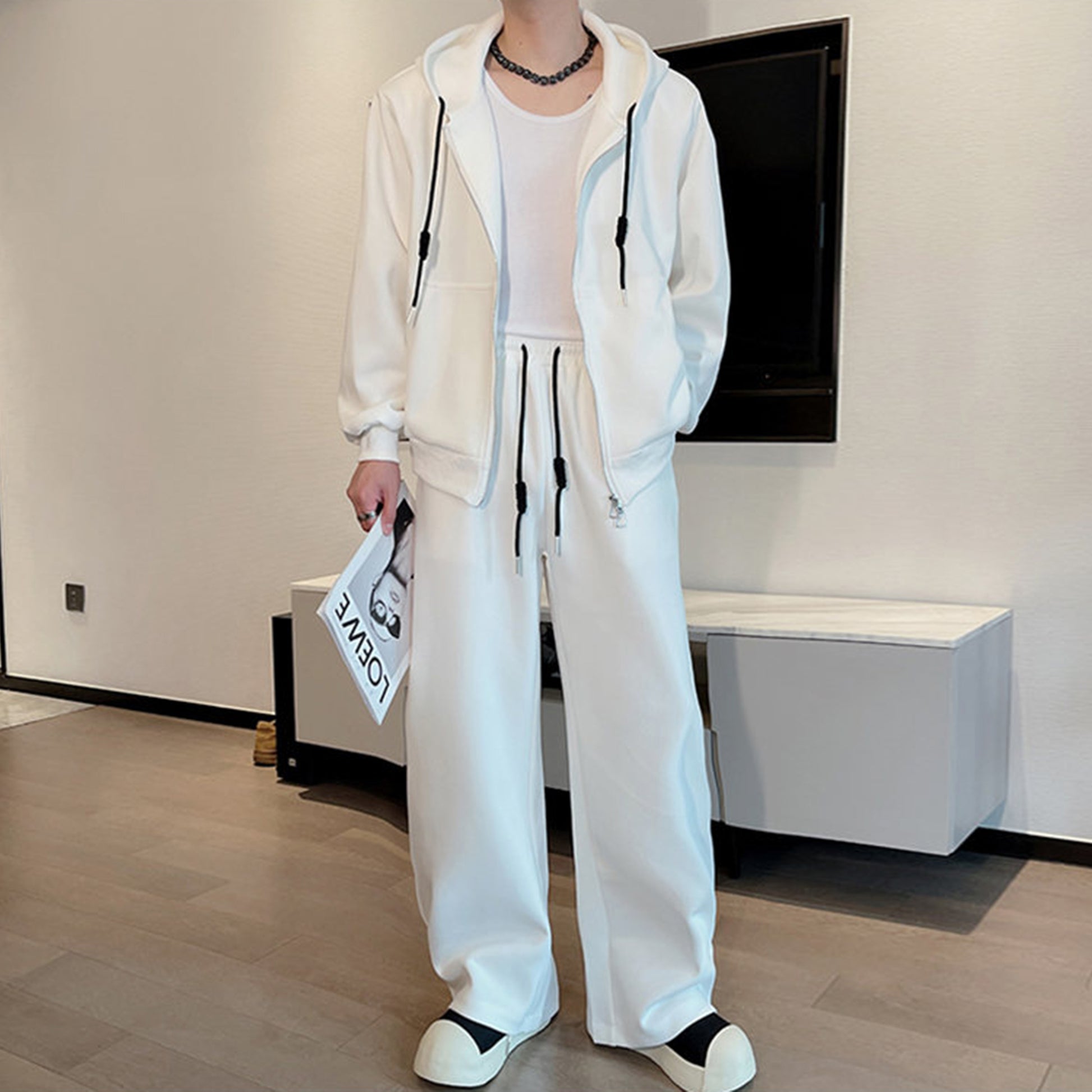 Удобный и стильный комплект в ретро-стиле с длинными рукавами и капюшоном. Состоит из куртки на молнии и широких брюк с завязками, выполнен в простом дизайне и идеально подходит для активного отдыха в весенне-осенний период.