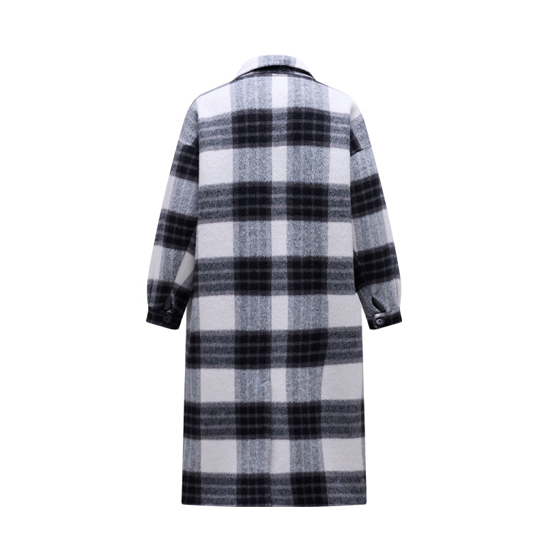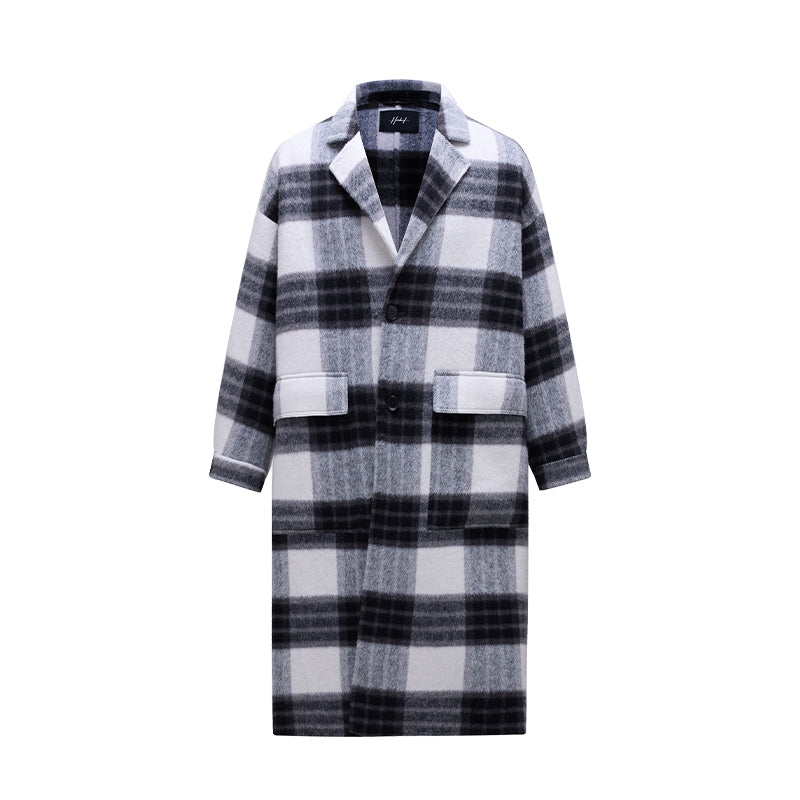 Мужское пальто средней длины с длинными рукавами и однорядной застёжкой на пуговицы, выполнено из шерсти и смесовых тканей с полиэстеровой подкладкой. Классический прямой крой и клетчатый узор делают изделие стильным и универсальным для работы и повседневного ношения.