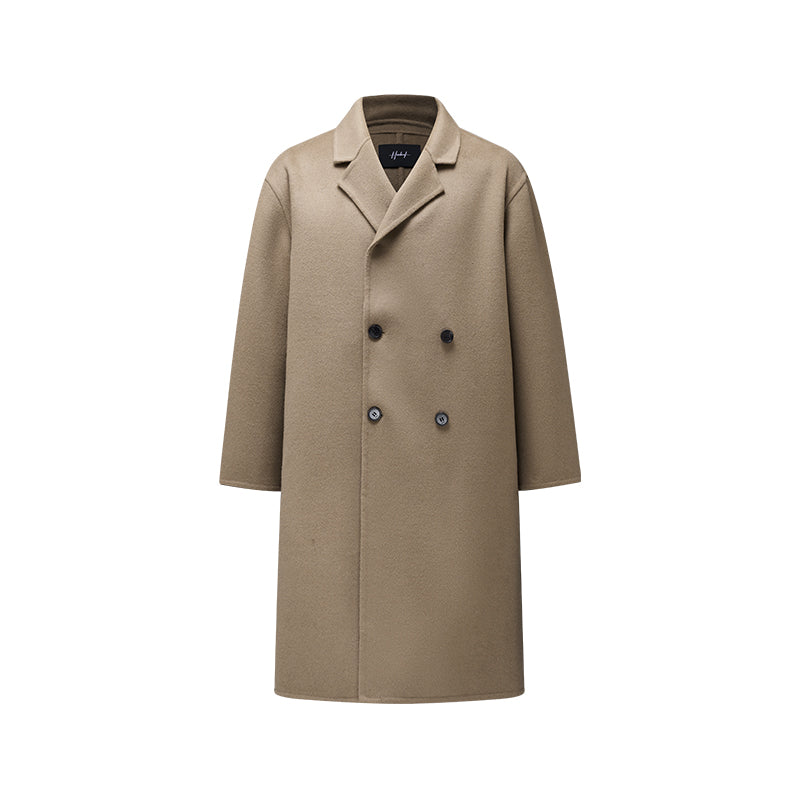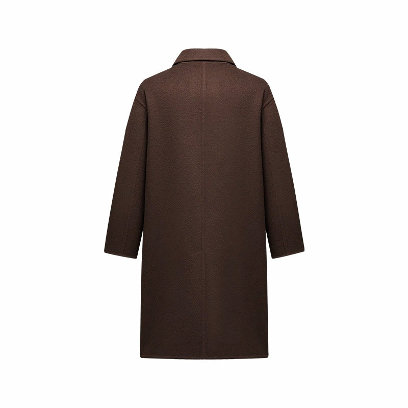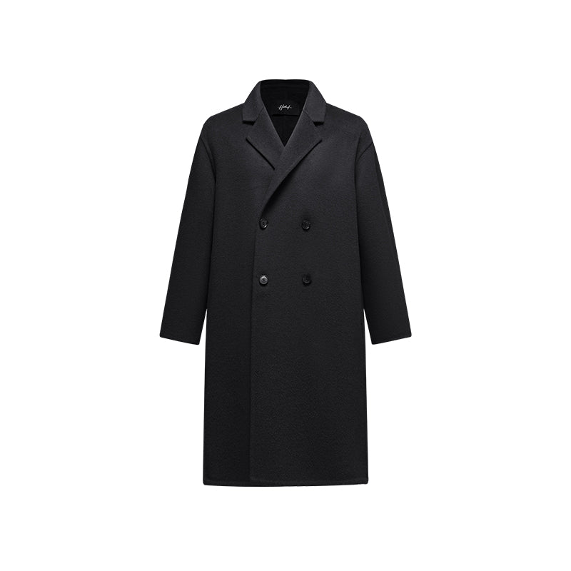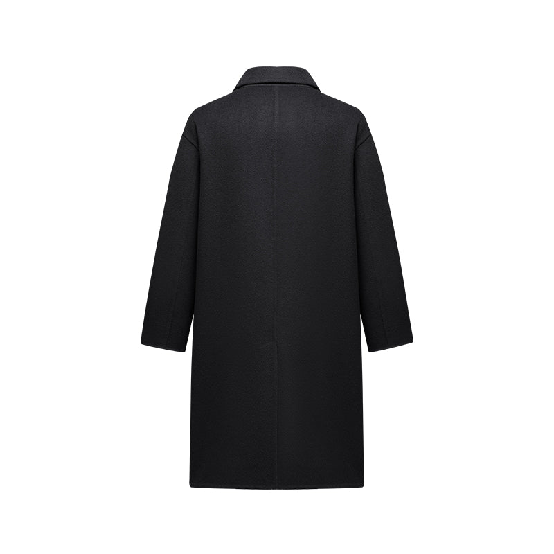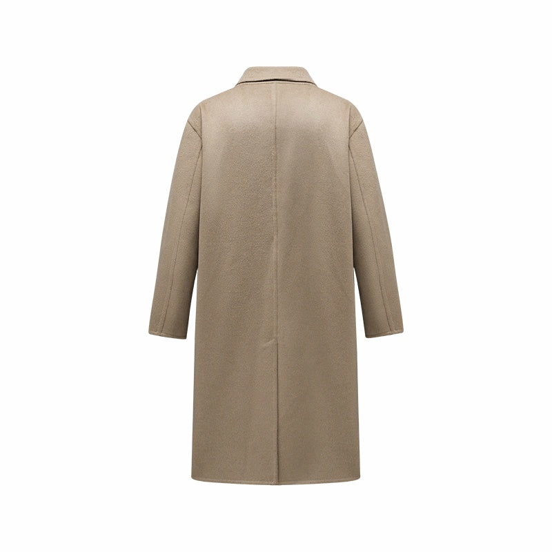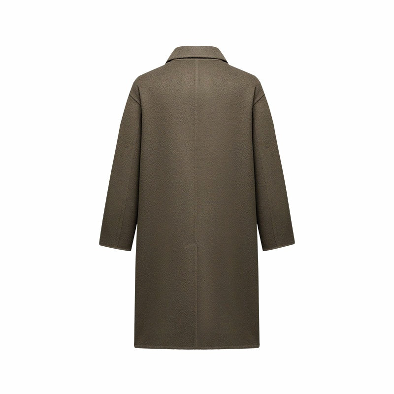 Мужское пальто, модель с длинными рукавами и двубортной застёжкой на пуговицы, выполнено из шерсти с полиэстеровой подкладкой. Прямой крой и минималистичный дизайн создают элегантный и универсальный образ для работы и повседневного использования.