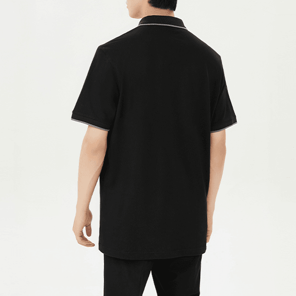 Черная рубашка-поло с короткими рукавами, выполненная из стрейчевого хлопка и с логотипом на патче. Эта модель имеет прямой приталенный крой и идеально подходит для повседневного ношения, обеспечивая комфорт и стильный внешний вид. Отличный выбор для мужчин, ценящих качество и современный дизайн.