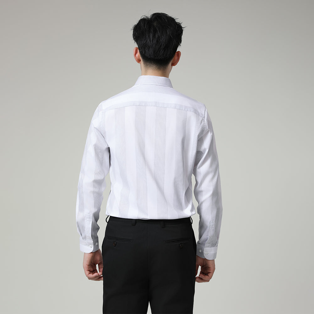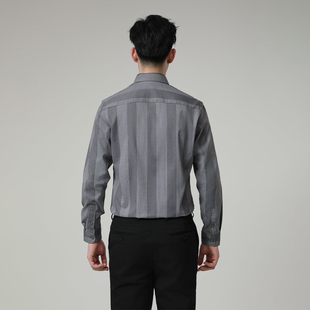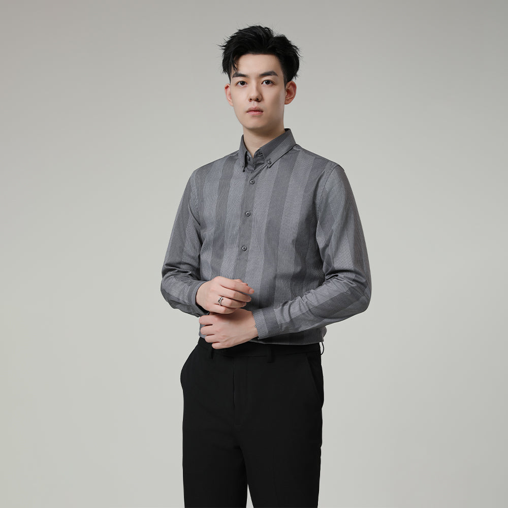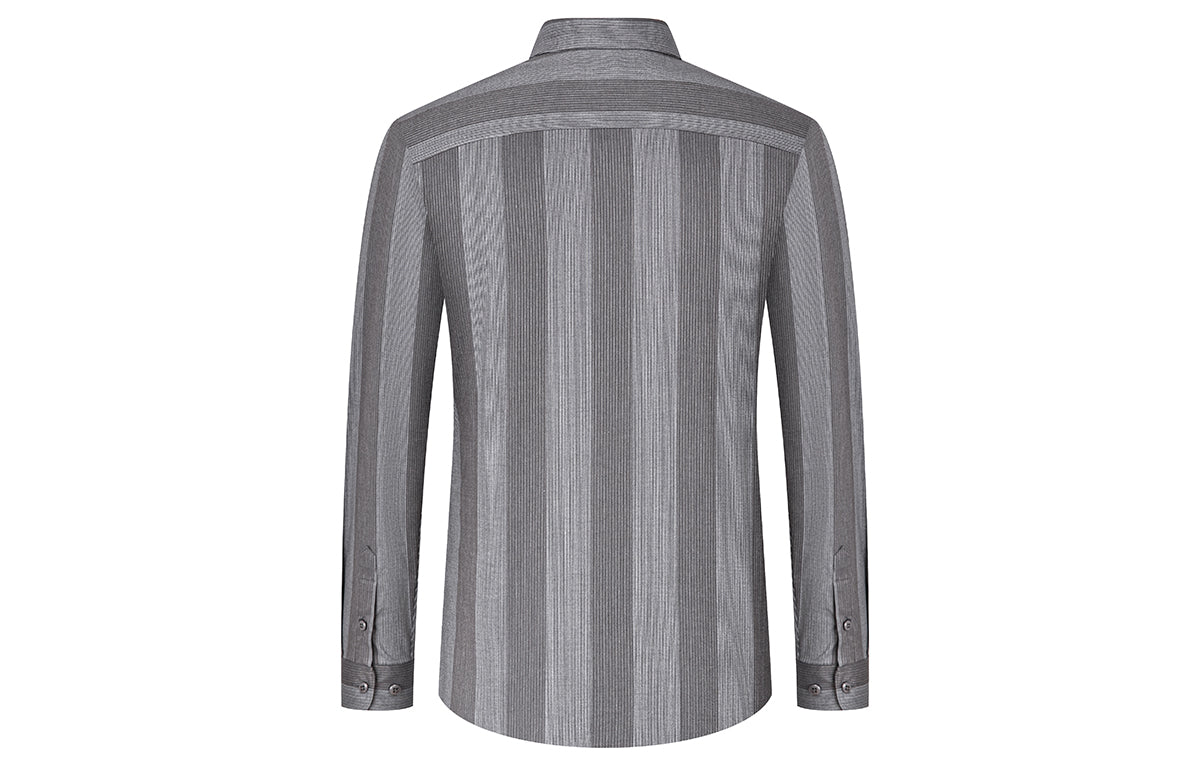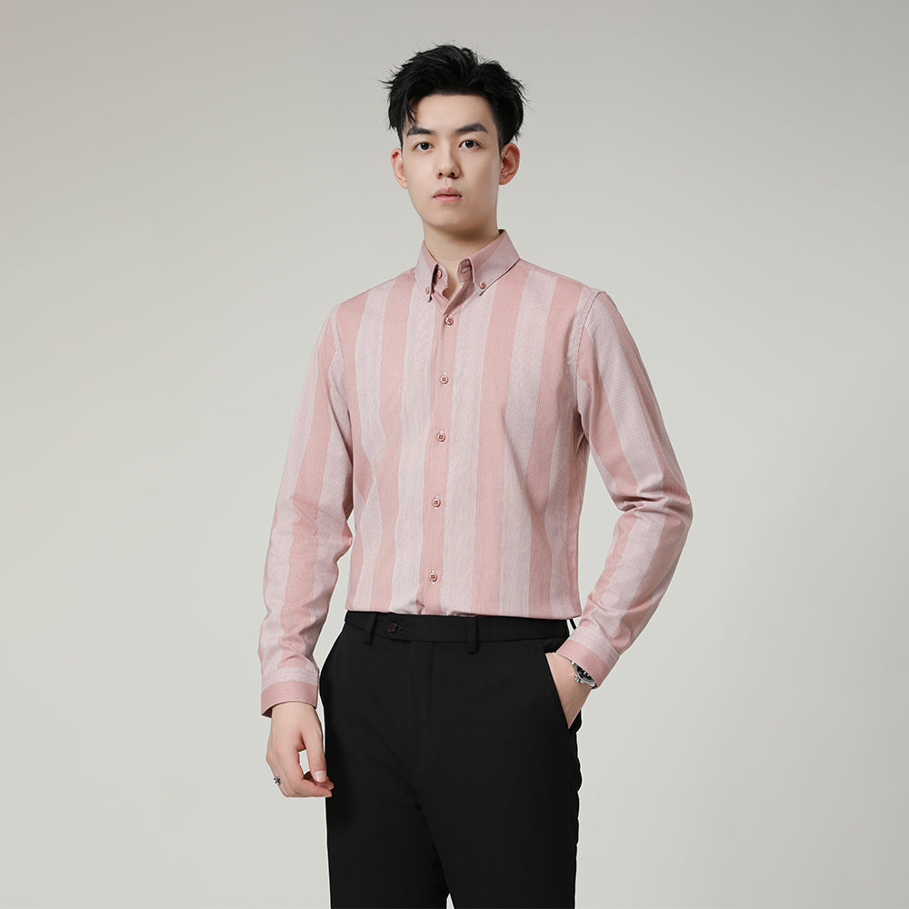 Облегающая элегантная рубашка в деловом стиле с контрастными вертикальными полосами и отложным воротником. Модель из смесовой ткани с вискозой создаёт стильный и утончённый образ для межсезонья.
