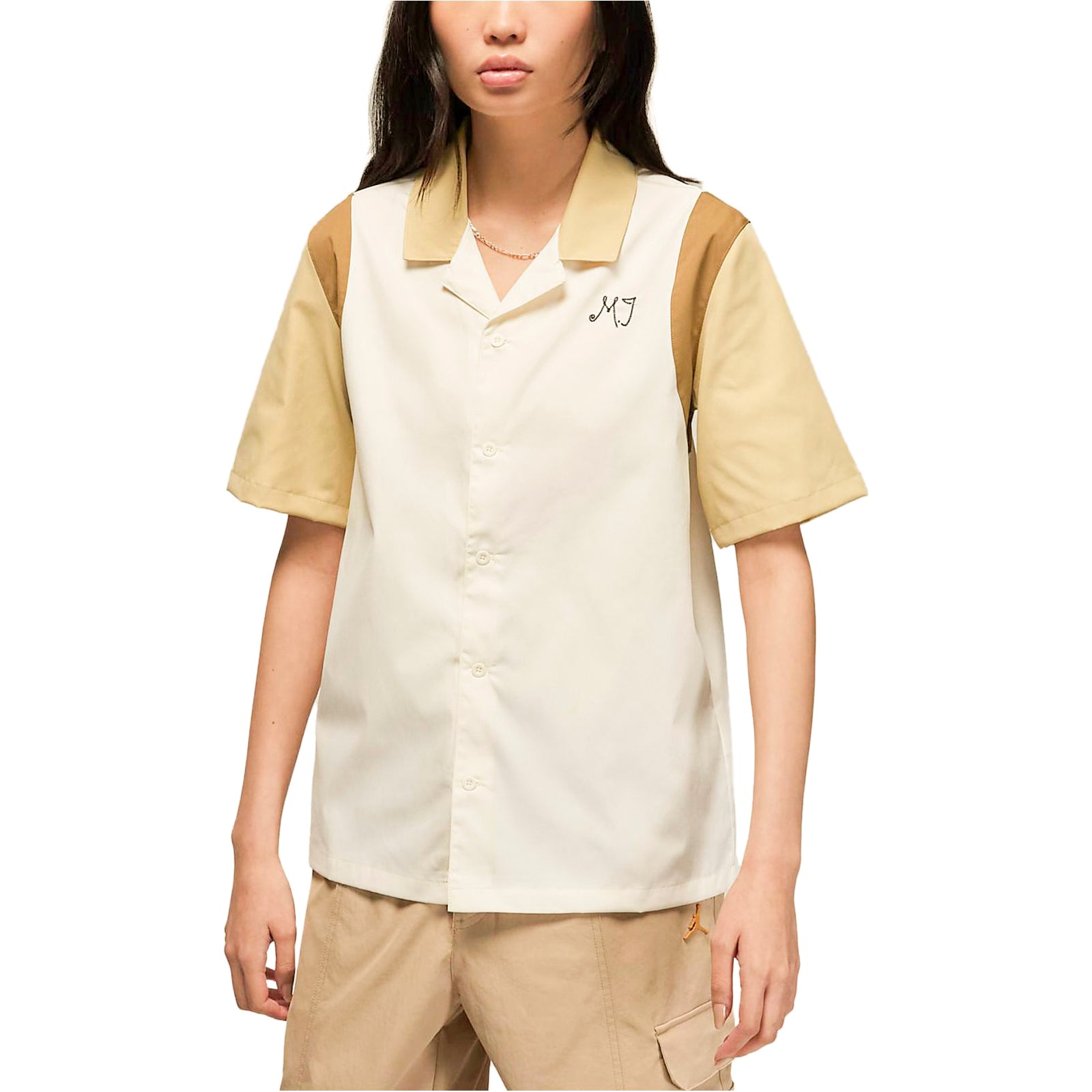 Рубашка свободного кроя с кубинским воротником и контрастным принтом в виде надписей, выполненная из полиэстера. Модель с заниженной линией плеча и застежкой на пуговицах представляет собой яркий элемент летнего гардероба.