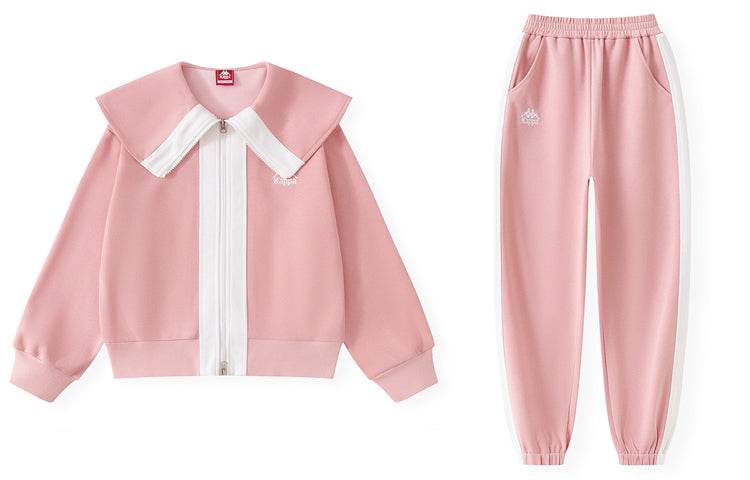 Kappa kids детская одежда откидной воротник молния случайные длинный рукав куртка прямые ноги стринги сплошной цвет