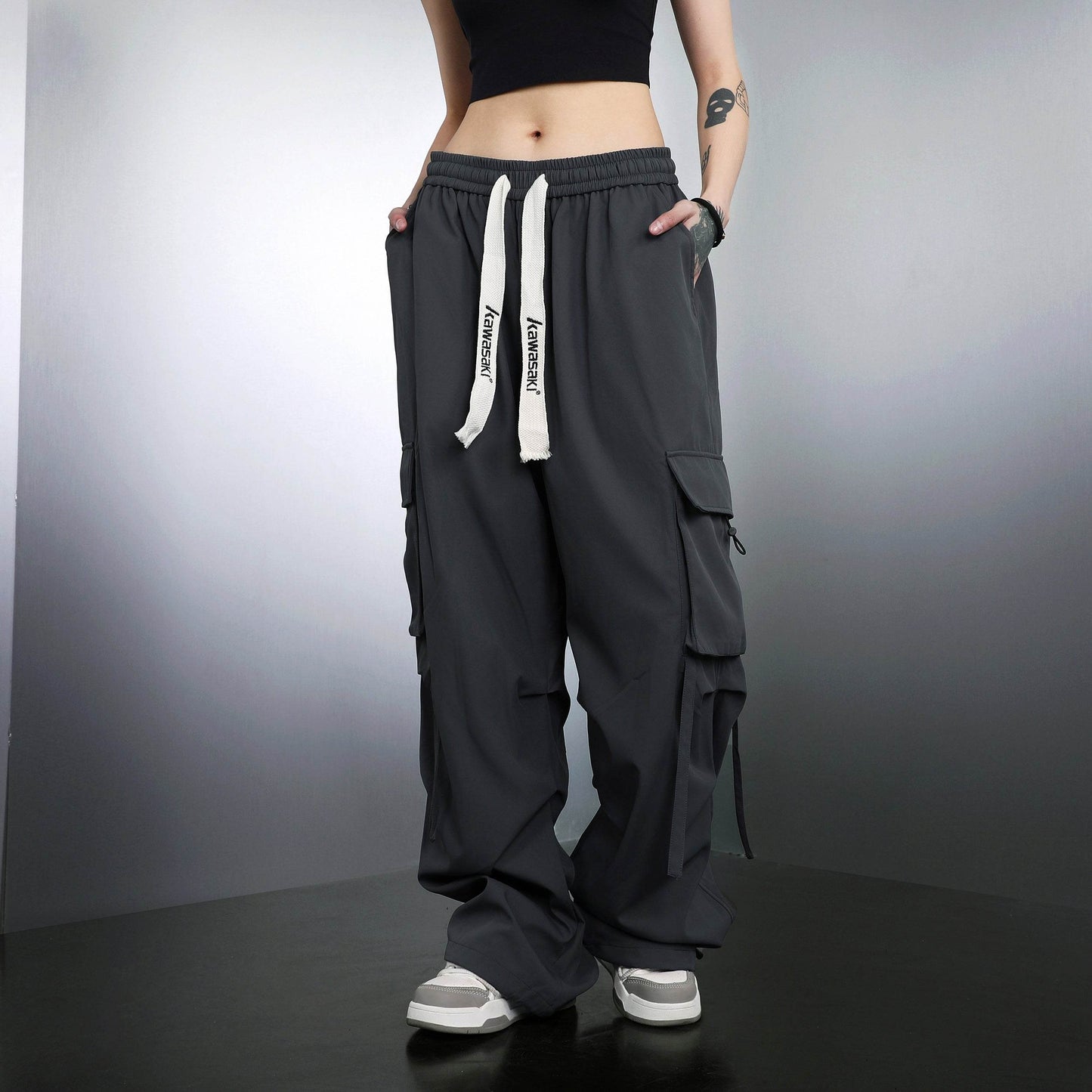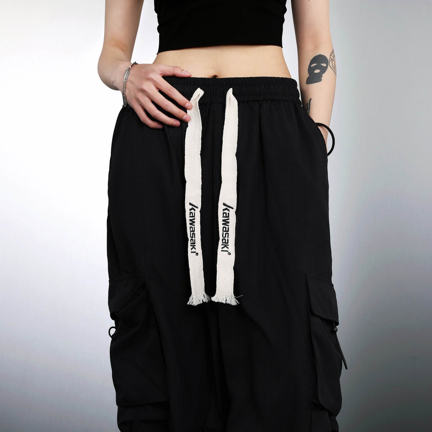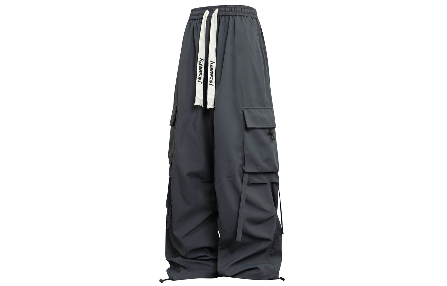 Свободные прямые повседневные брюки Kawasaki с логотипом американского бренда и шнуровкой, подходят для широких ног. Унисекс модель для мужчин и женщин.