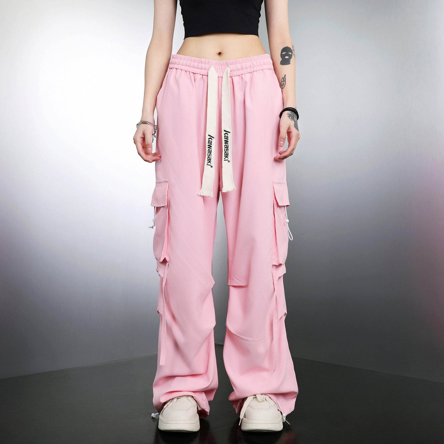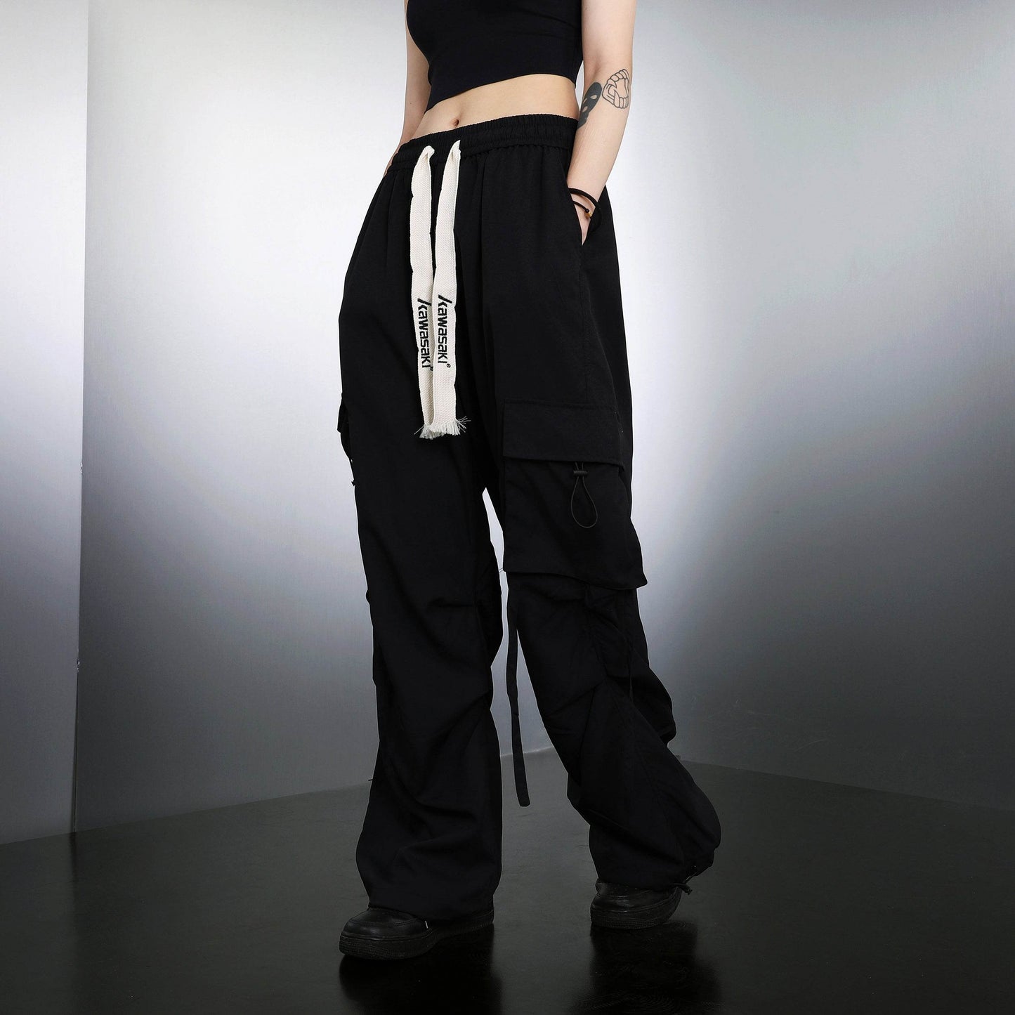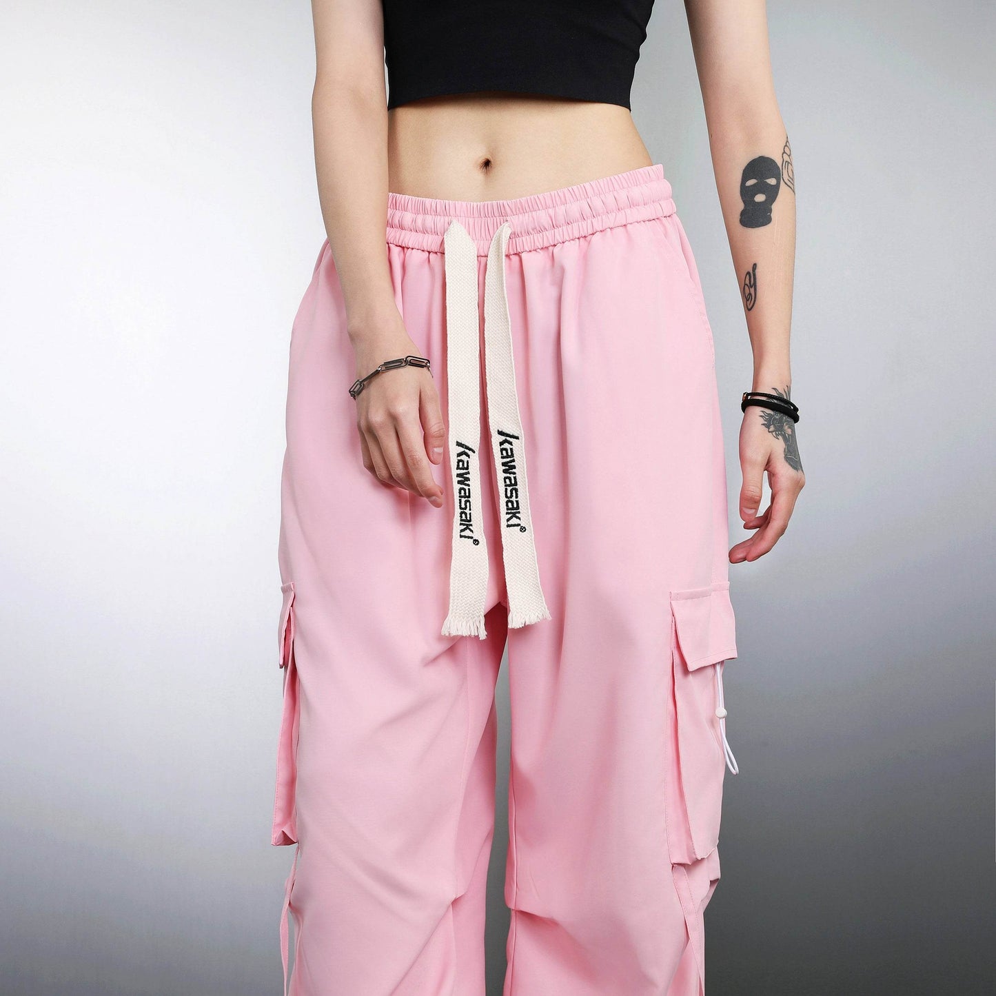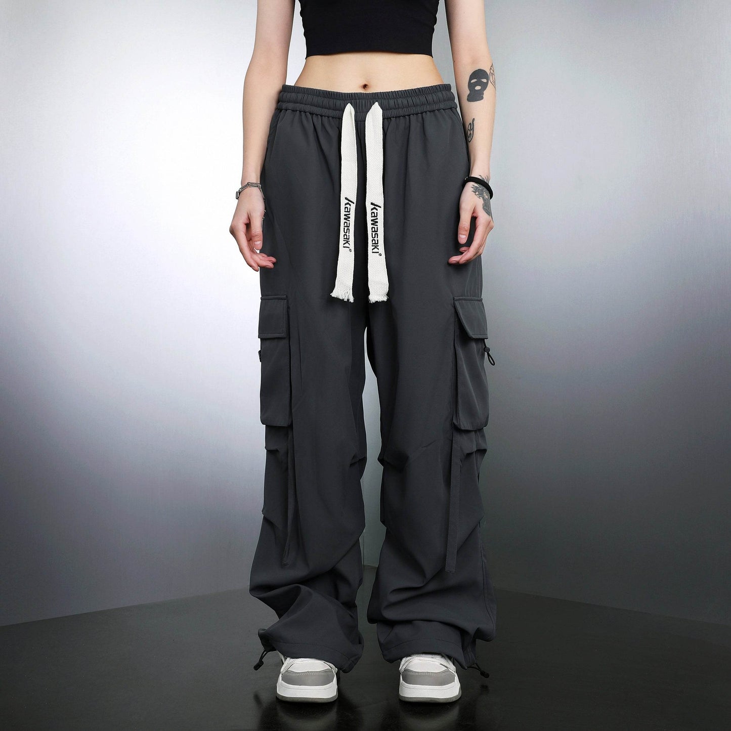 Свободные прямые повседневные брюки Kawasaki с логотипом американского бренда и шнуровкой, подходят для широких ног. Унисекс модель для мужчин и женщин.