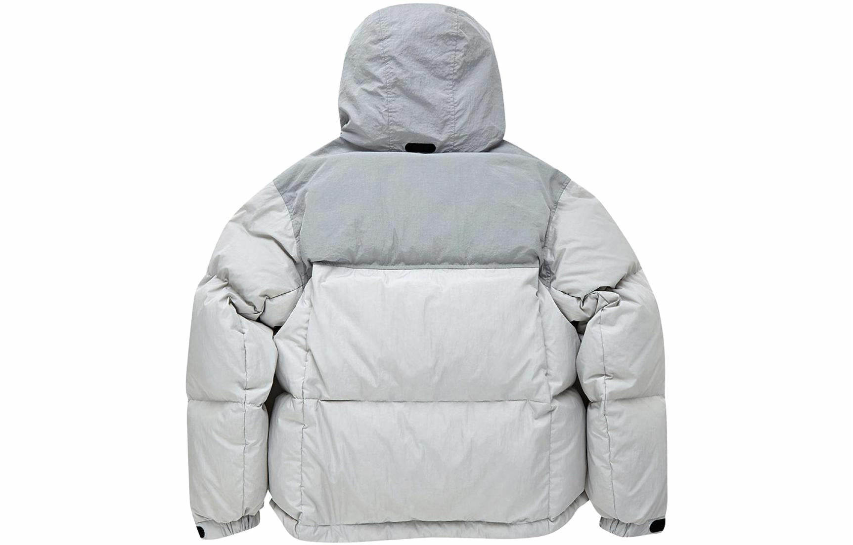 Укороченный легкий пуховик с капюшоном, выполненный из нейлоновой ткани с контрастным логотипом. Модель на молнии обеспечивает защиту от холода и современный силуэт для межсезонья и мягкой зимы.