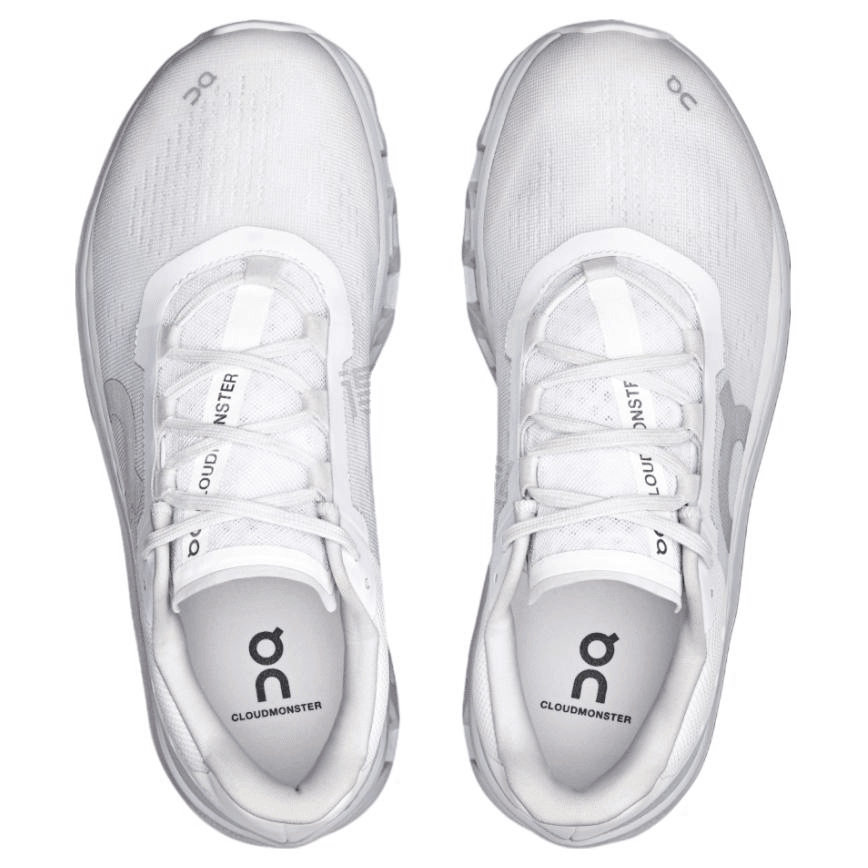 Мужские кроссовки On Cloudmonster в белом цвете. Удобные и универсальные, с дышащей конструкцией и износостойкой подошвой, идеально подходят для марафонских тренировок и бега на длинные дистанции. Обеспечивают комфорт и поддержку на каждом шагу.