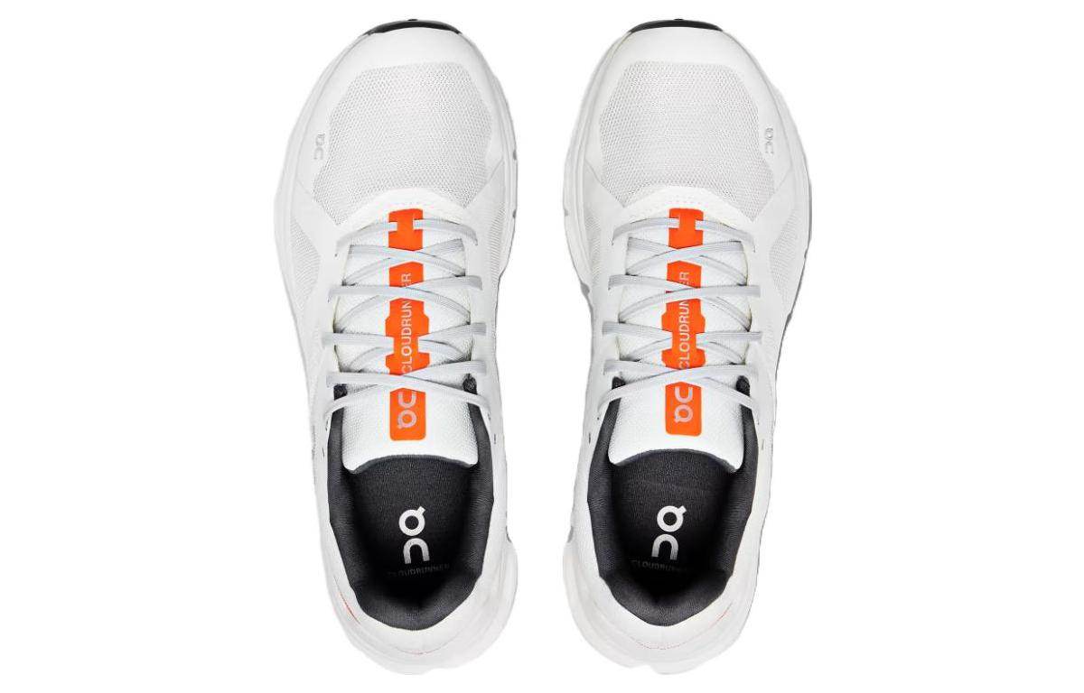 Мужские кроссовки On Cloudrunner в белом цвете. Удобные и износостойкие, с дышащей сетчатой конструкцией и низким профилем. Идеально подходят для повседневной носки и бега, обеспечивая комфорт и поддержку на каждом шагу.