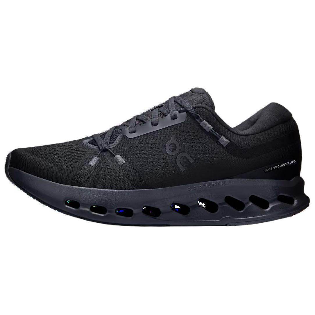 Мужские кроссовки On Cloudsurfer 2 в черном цвете. Удобные, с тканевой конструкцией, нескользящей и износостойкой подошвой, идеально подходят для бега и активного отдыха. Низкий профиль обеспечивает комфорт и поддержку на каждом шагу.