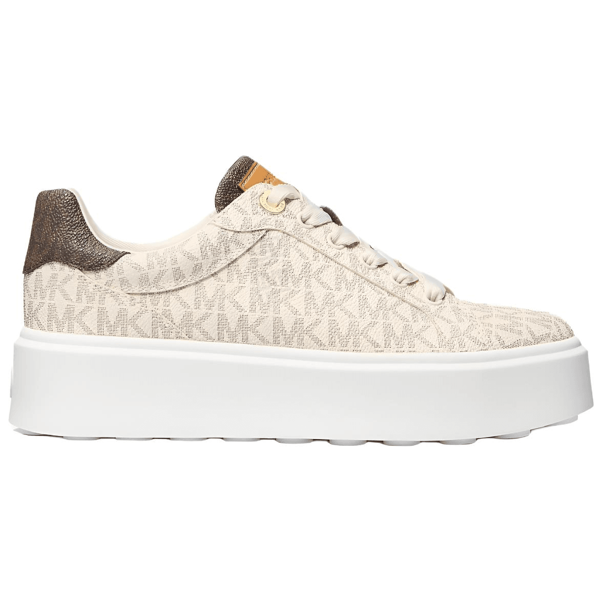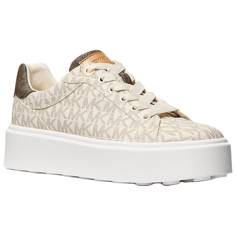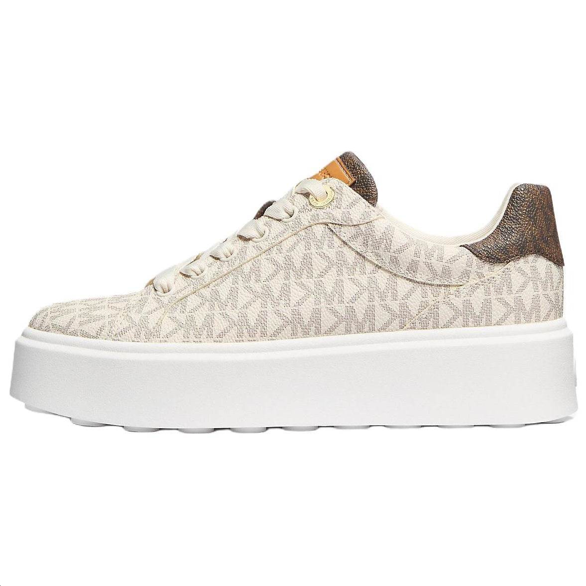 Женские кроссовки Michael Kors Romy с принтом и круглым носом, выполненные в бежевом цвете. Эти стильные кроссовки с низким профилем идеально подходят для повседневной носки и создания модного образа. Комфортные и универсальные, они добавят изысканности вашему гардеробу.