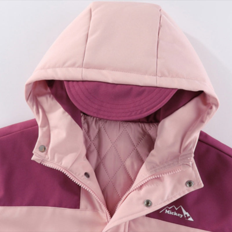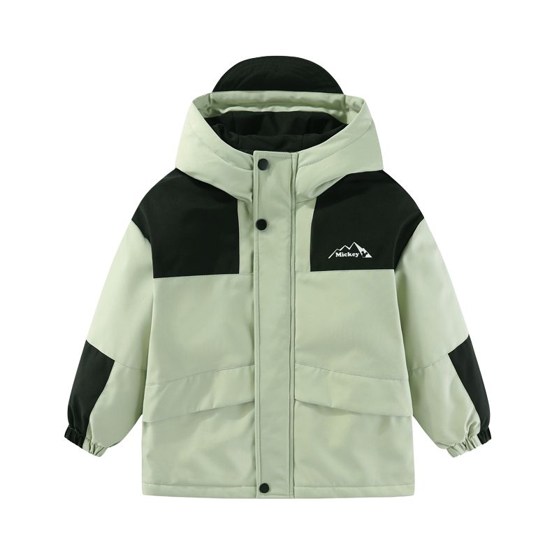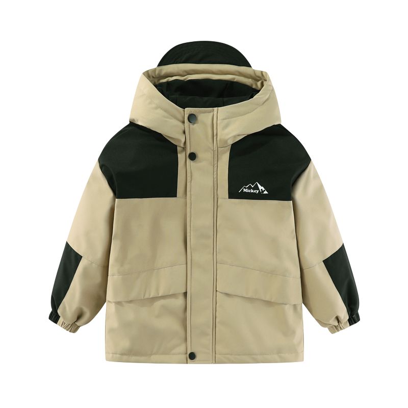 Тёплая детская куртка с капюшоном и длинными рукавами, выполненная с контрастными вставками и застёжкой на молнию. Утеплённая полиэстером, она обеспечивает комфорт, тепло и защиту от ветра в осенне-зимний сезон.