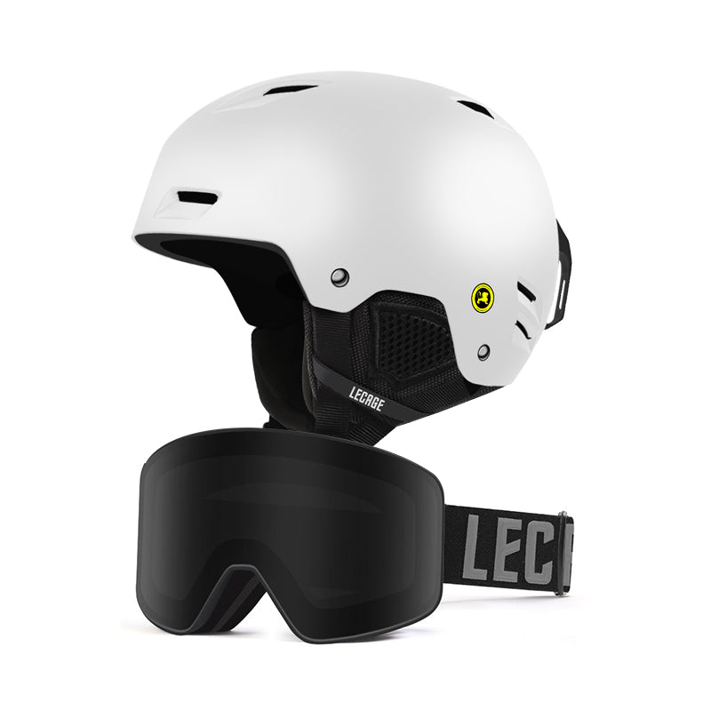Состав: шлем — ABS пластик (корпус) + EPS пена (внутренняя подкладка); очки — поликарбонат (линзы) + TPU/ABS (оправа); ремешок — эластичная ткань.