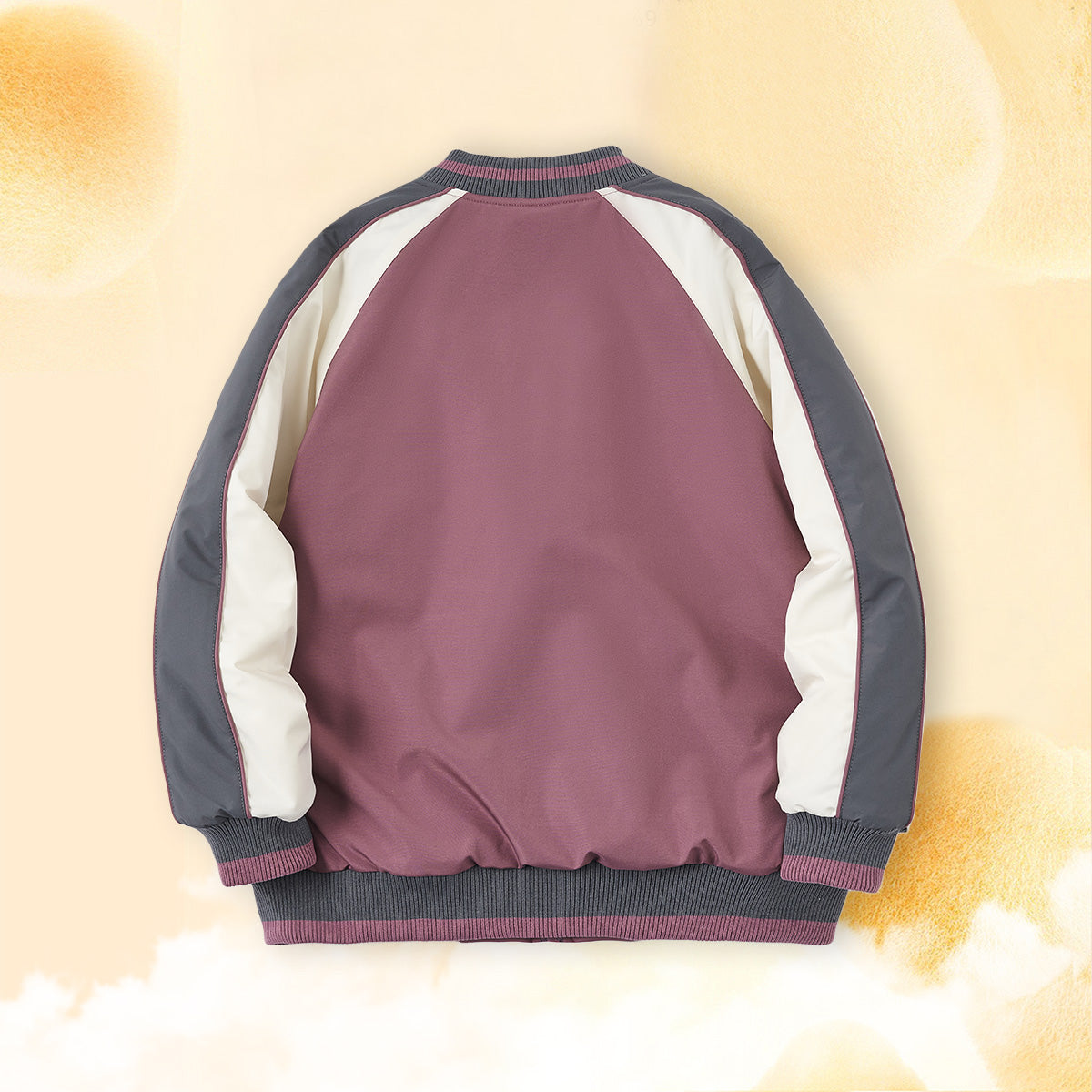 Тёплая детская куртка в стиле бейсбольной формы с комбинированной отделкой, цельнокроеными рукавами и застёжкой-молнией. Модель из полиэстера с контрастными вставками подходит для холодной погоды.