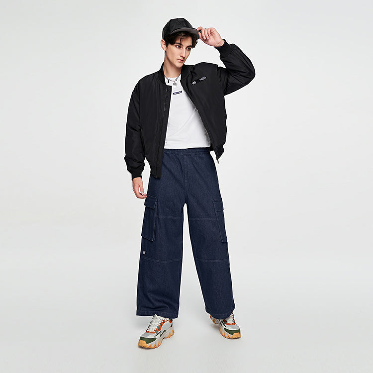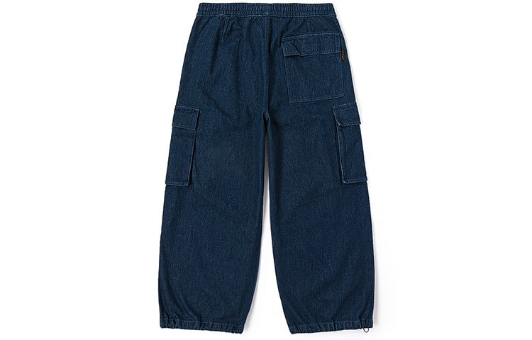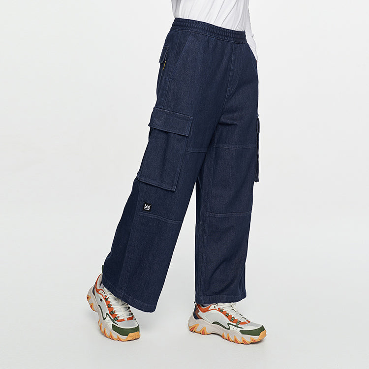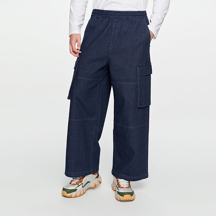 Широкие брюки в стиле карго с многочисленными карманами, выполненные из эластичного денима. Модель со средней посадкой и поясом на резинке обеспечивает комфорт и утилитарный уличный стиль.