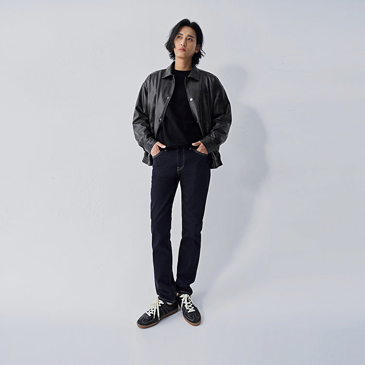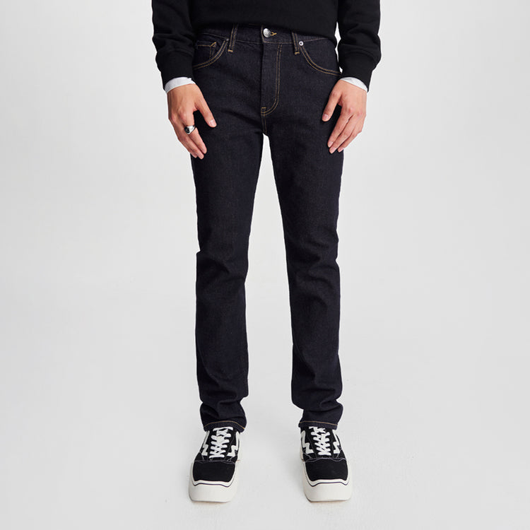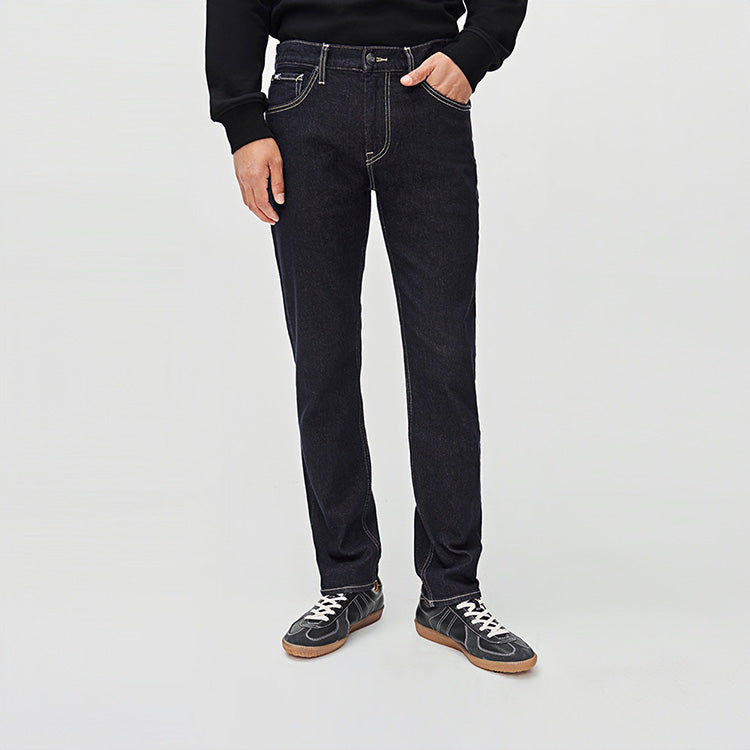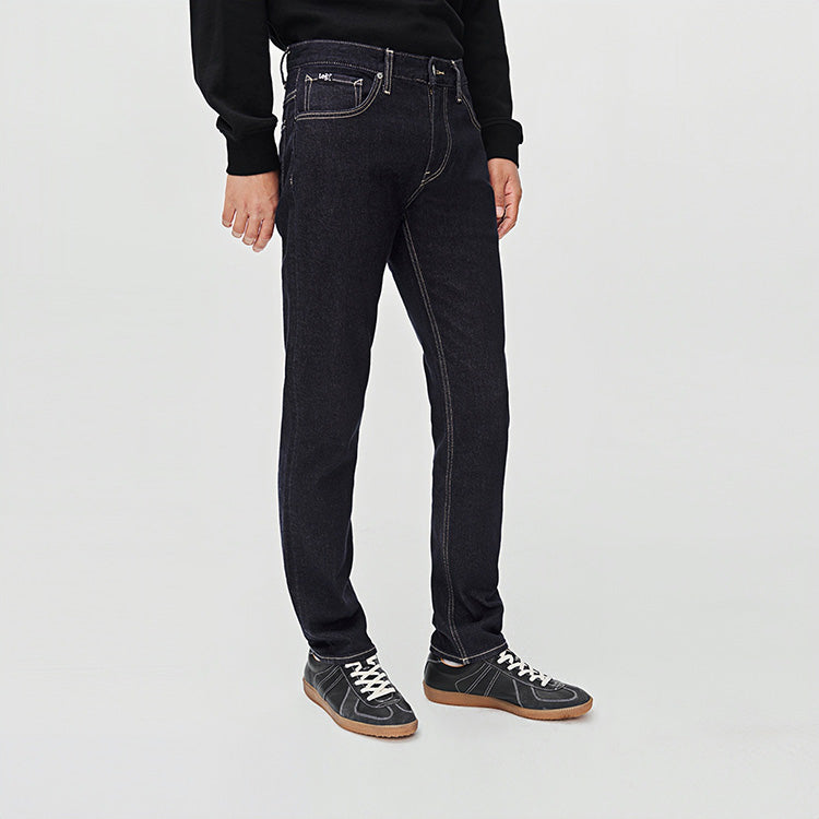 Облегающие джинсы прямого кроя с пятью карманами, выполненные по технологии, предотвращающей выцветание. Модель средней посадки на молнии из эластичного хлопка сохраняет насыщенный цвет и подходит для прохладного времени года.