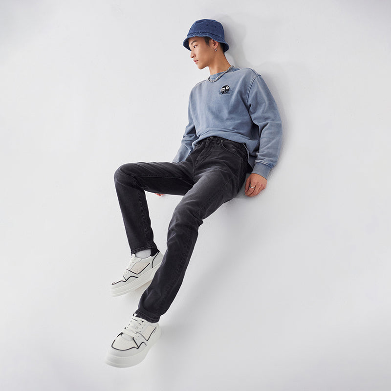 Джинсы прямого кроя в формате carrot fit с фирменной пятикарманной конструкцией. Модель выполнена из плотного денима с добавлением эластана для комфорта и идеально подходит для создания повседневных образов.