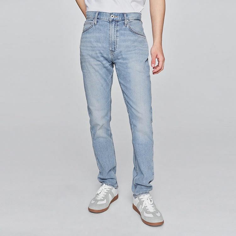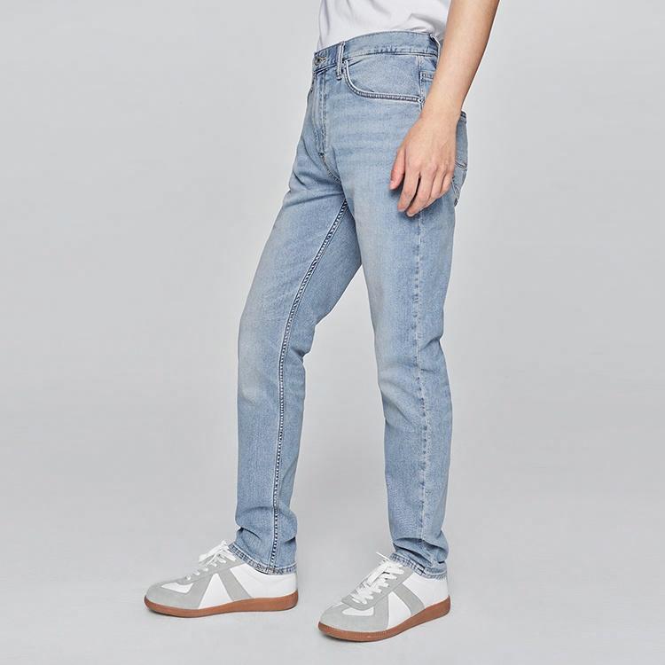 Лёгкие джинсы сужающегося кроя с охлаждающим эффектом и прозрачным оттенком для жаркой погоды. Модель средней посадки на молнии из смесового хлопка обеспечивает комфорт и современный силуэт для летнего сезона.