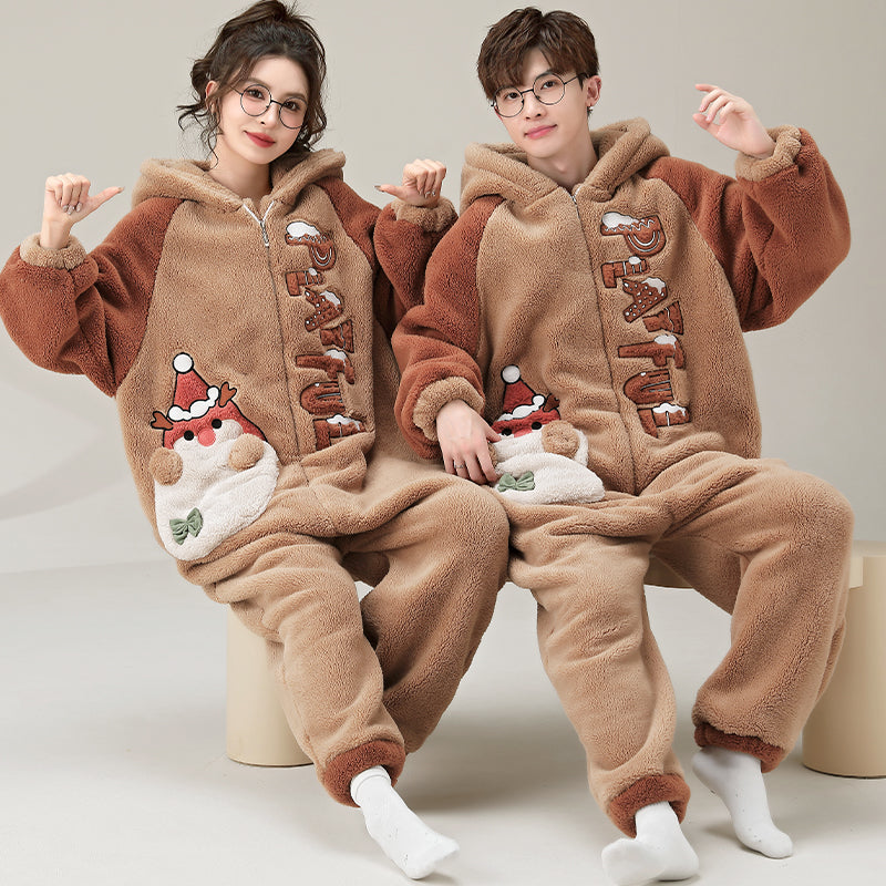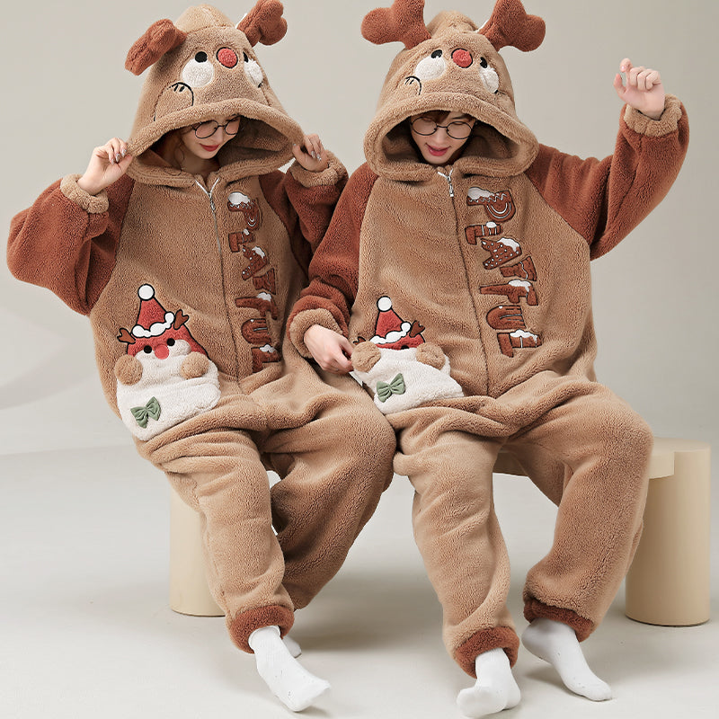 Уютный комбинезон с капюшоном и карманами из мягкого кораллового флиса, обеспечивающий тепло и комфорт. Унисекс модель с милым принтом в стиле мультфильмов и простым молодежным дизайном.