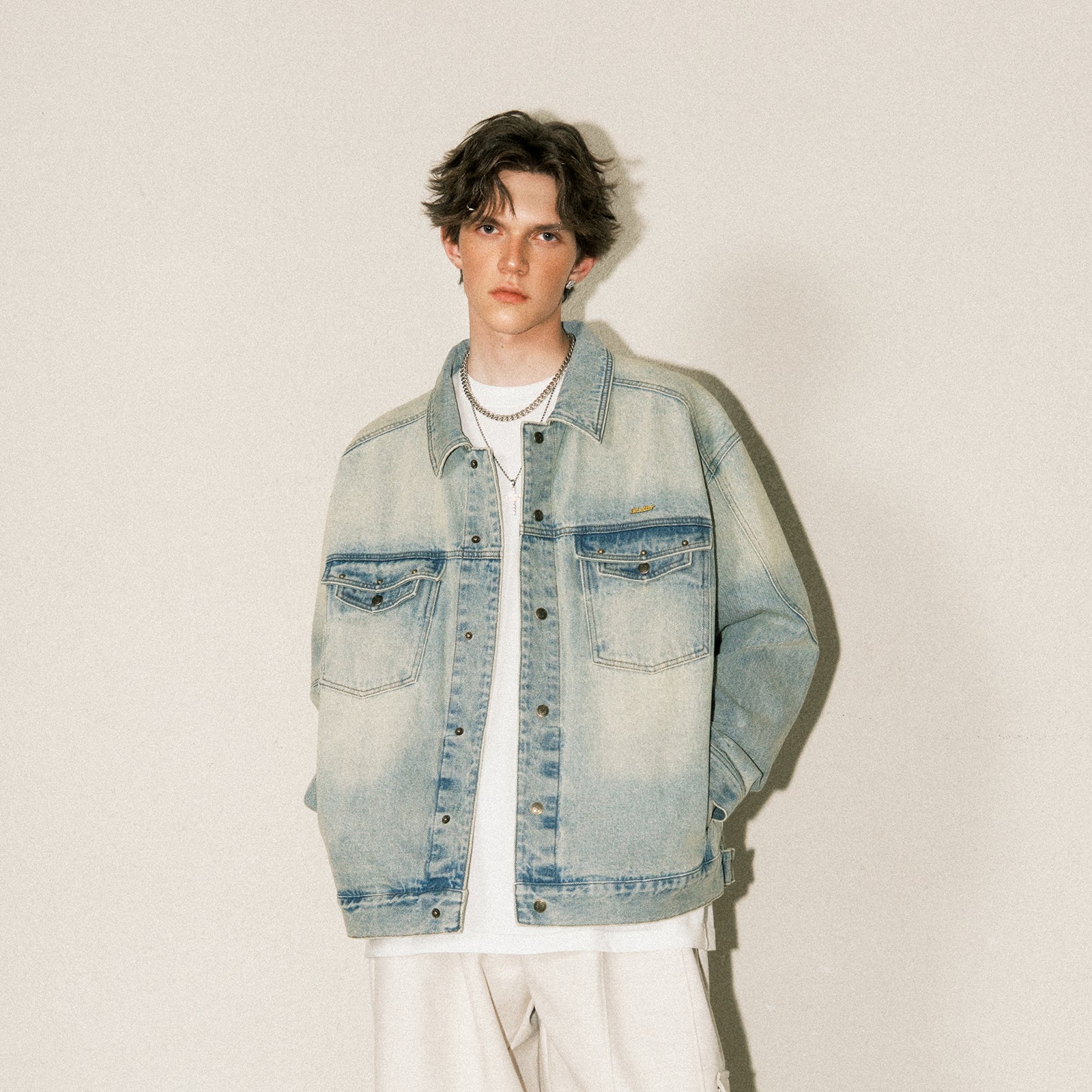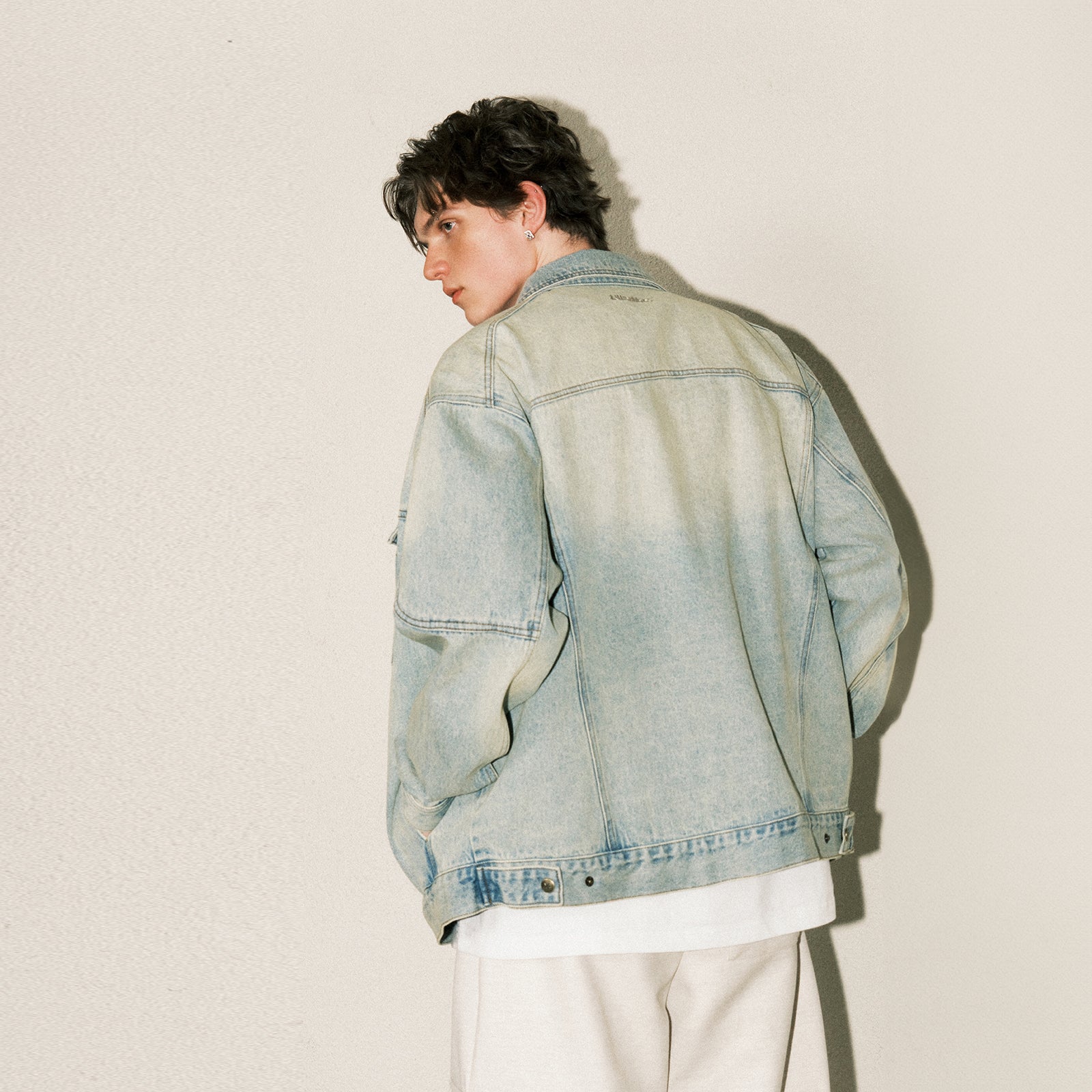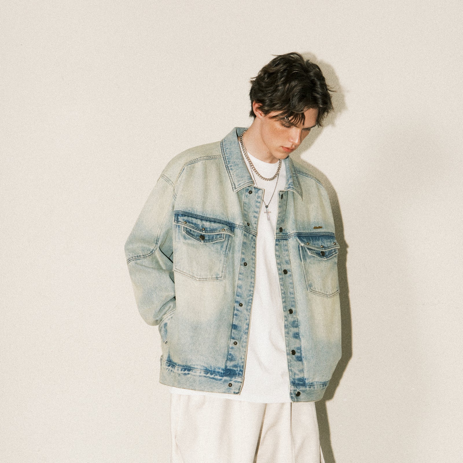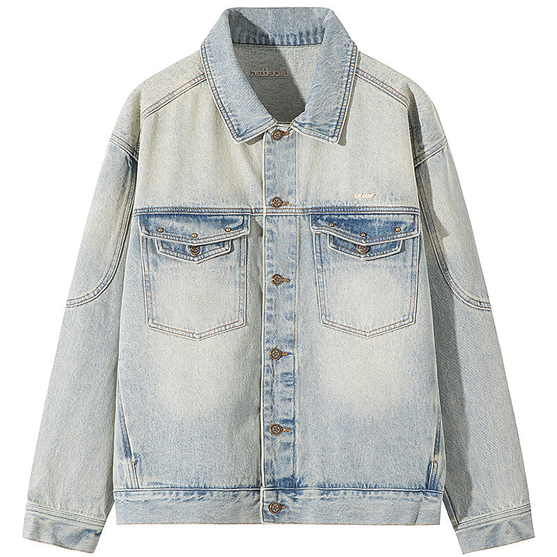 Мужская джинсовая куртка с отложным воротником и свободным кроем, идеально подходит для повседневного ношения весной и осенью. Модель сочетает стильный дизайн с комфортом и практичностью.