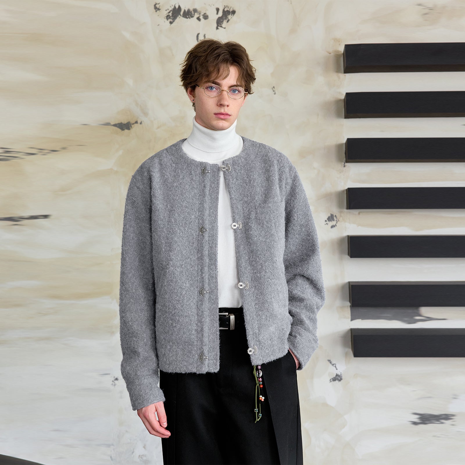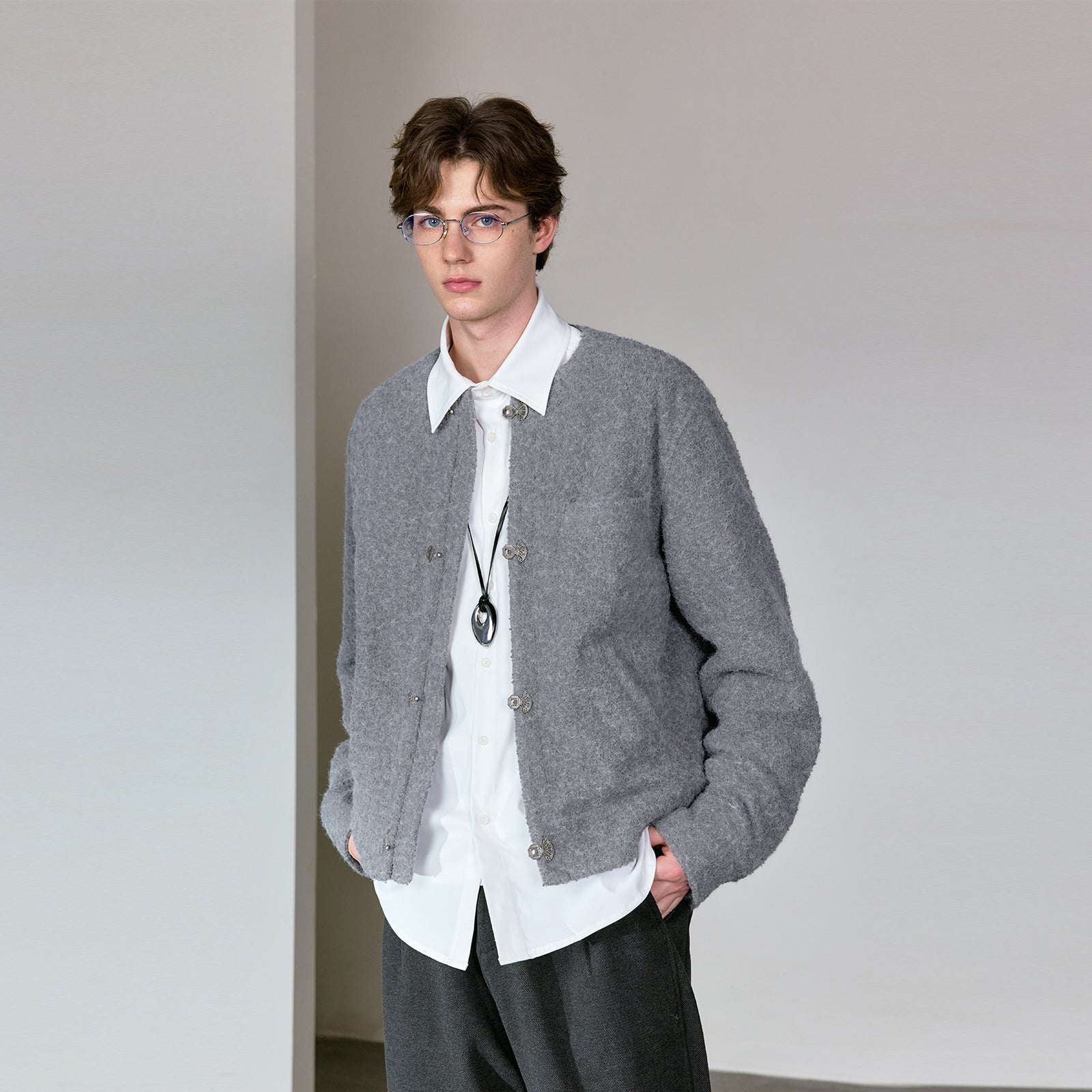 Мужской кардиган lilbetter с круглым вырезом и длинными рукавами реглан. Модель свободного кроя выполнена из полиэстера, подходит для работы и повседневной носки зимой.