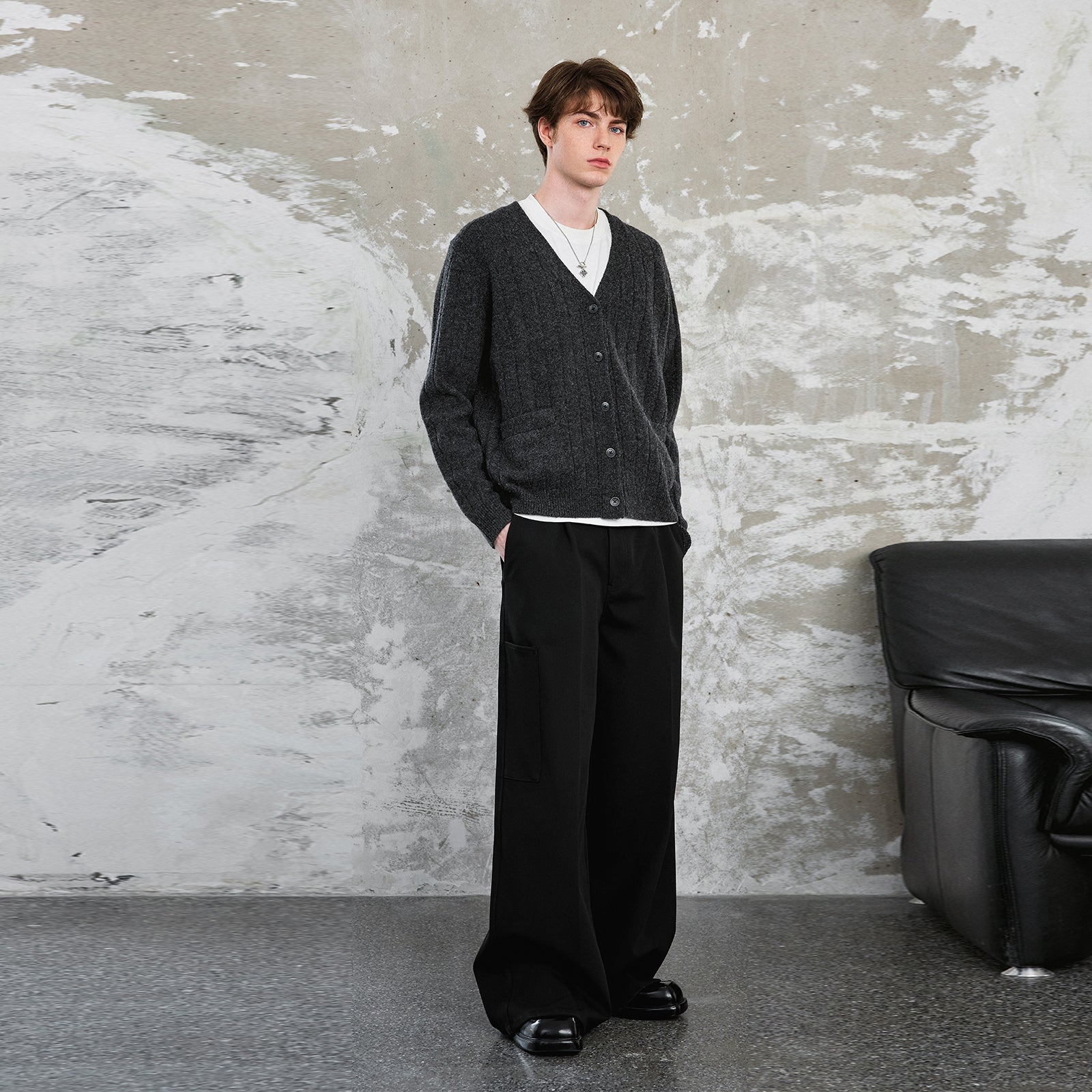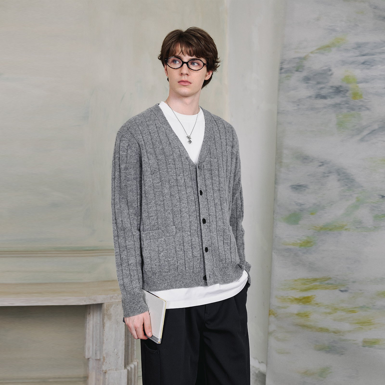 Мужской кардиган с V-образным вырезом и длинными рукавами, выполненный из высококачественной шерсти мериноса. Модель приталенного кроя средней плотности обеспечивает комфорт, тепло и стиль для повседневной носки весной, осенью и зимой.