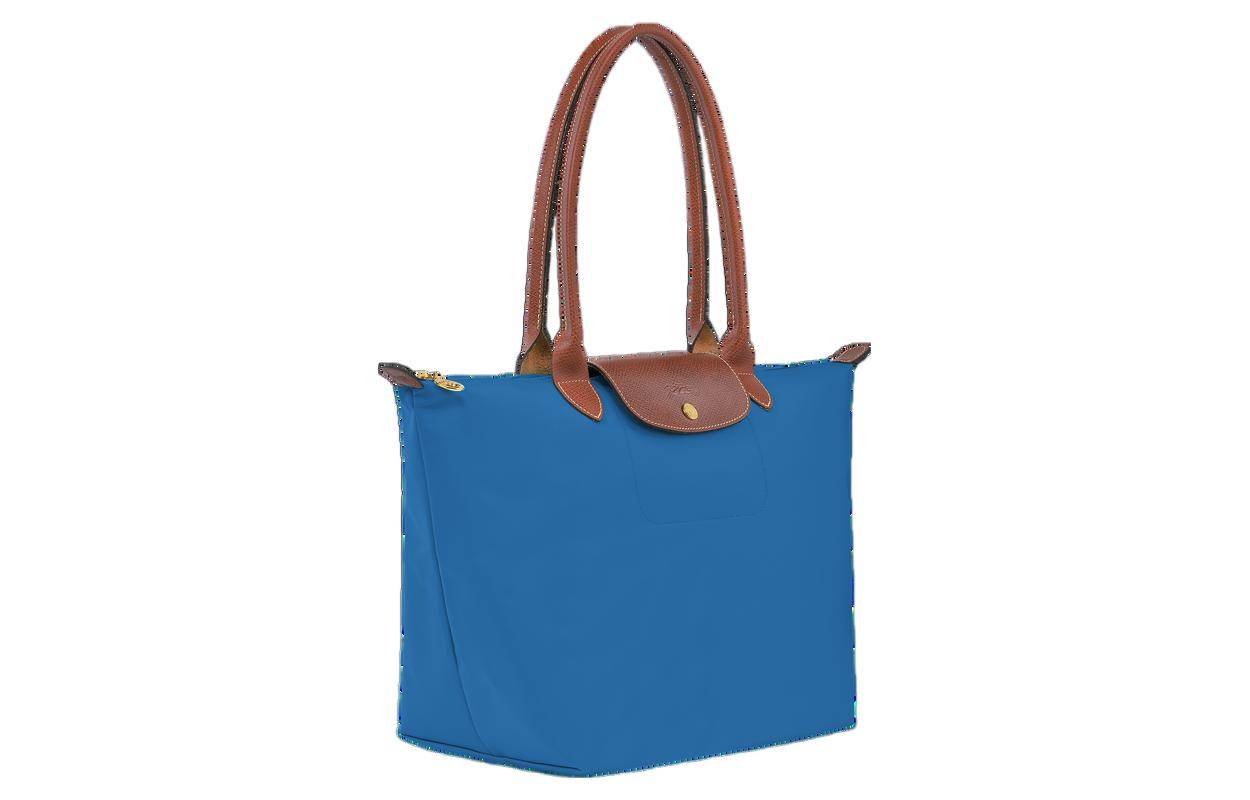 Сумка Longchamp Le Pliage 31 выполнена с металлической фурнитурой золотого цвета и оснащена длинными ручками, что обеспечивает комфорт при ношении. Модель в больших размерах с кобальтово-синим оттенком и отделкой из коровьей кожи в стиле "dumpling" идеально подходит для покупок и повседневного использования, сочетая стиль и функциональность.