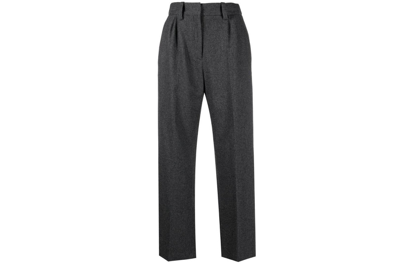 Однотонные брюки Maje SS23 с высокой талией и прямыми ногами, выполненные в сером цвете. Эти стильные и элегантные брюки обеспечивают комфорт и идеальную посадку, идеально подходят для повседневной носки и офисного стиля.