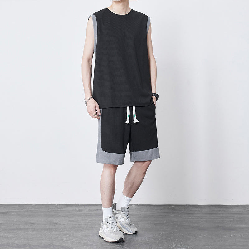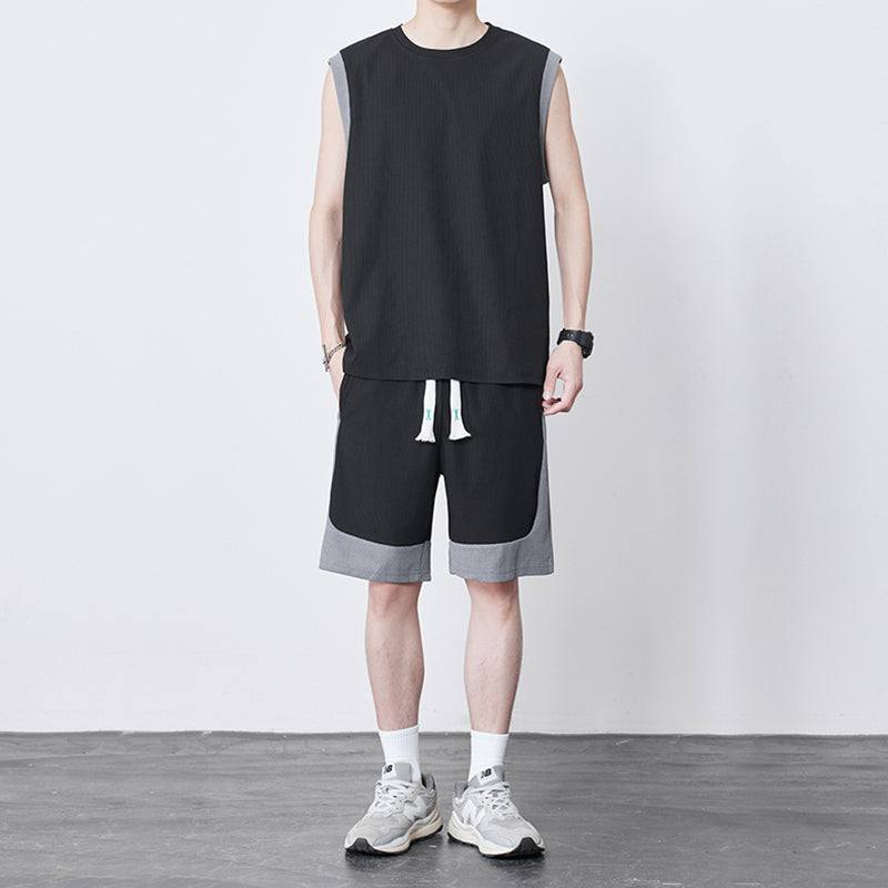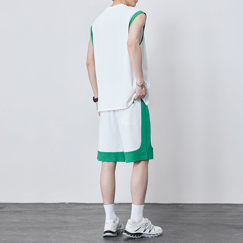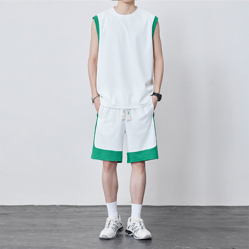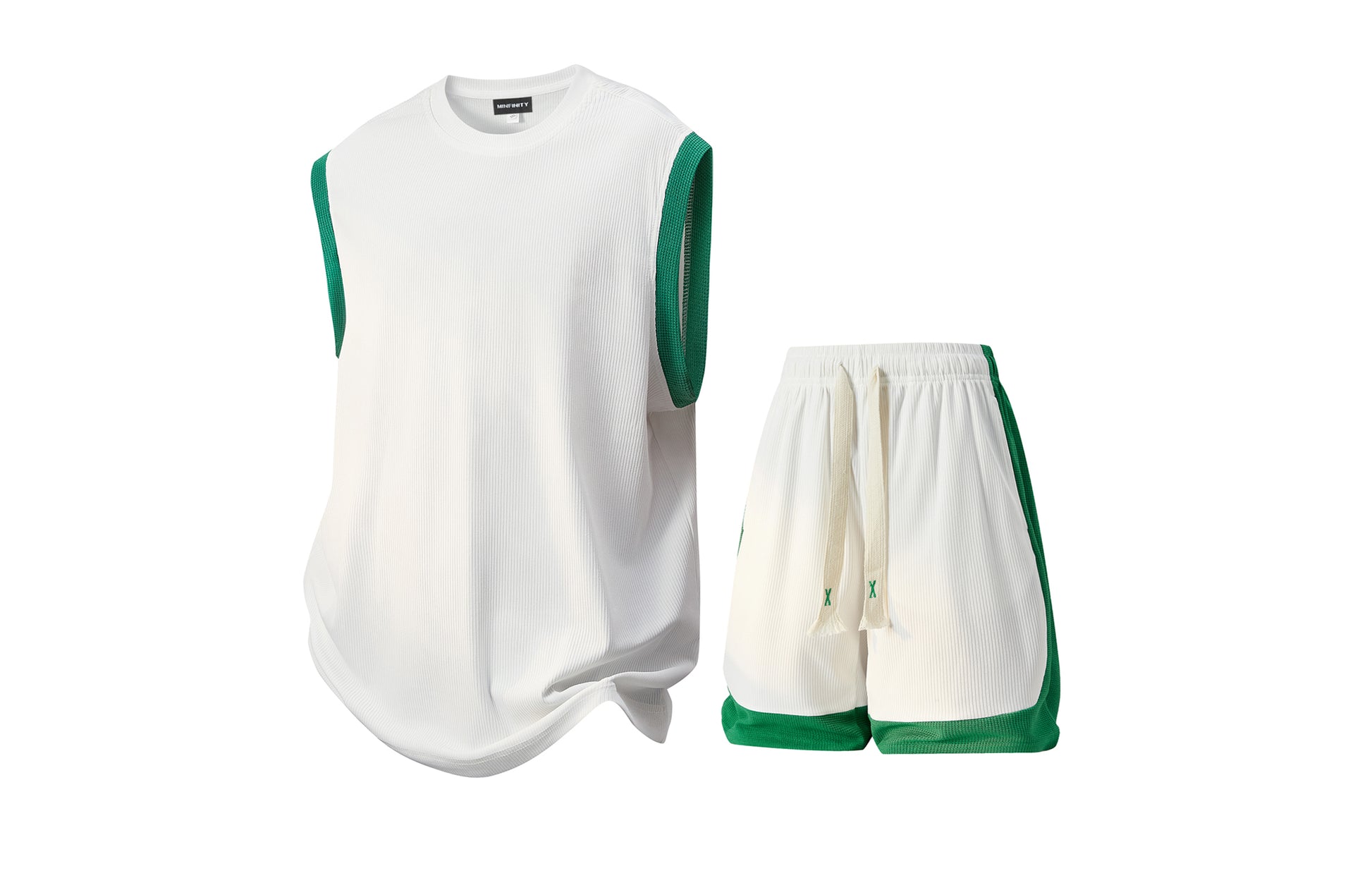 Лёгкий летний спортивный костюм Minfinity в стиле ретро‑спорт. В комплект входит майка без рукавов с круглым вырезом и свободным кроем, а также шорты на эластичном поясе со шнурком. Контрастные вставки придают модели динамичный и модный вид. Подходит для занятий спортом, активного отдыха и повседневной носки.
