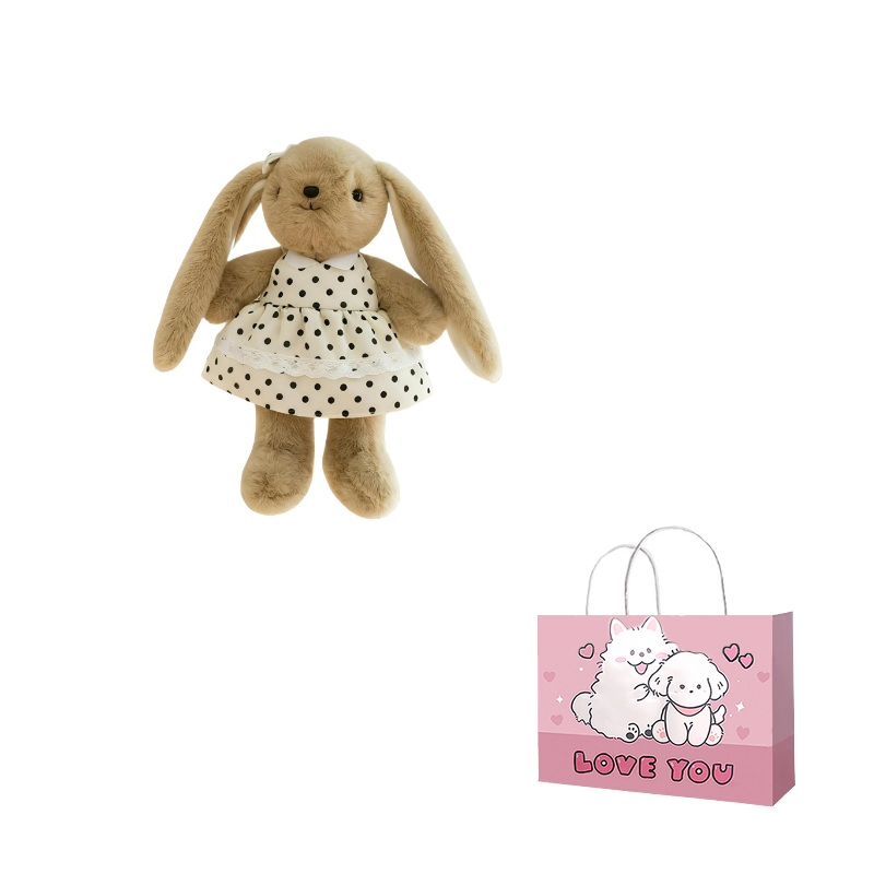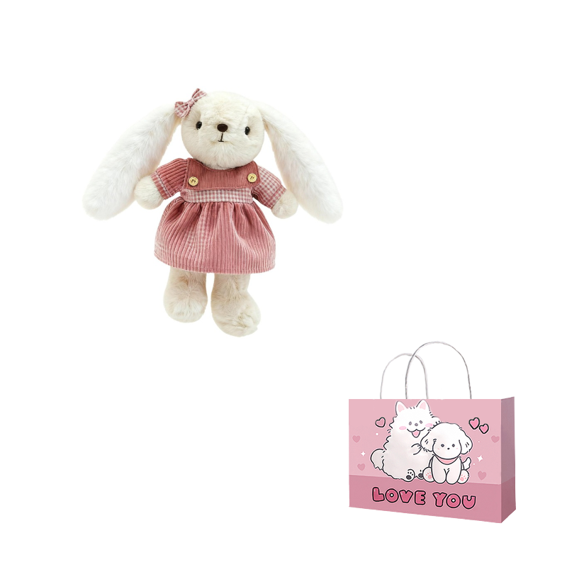 Мягкая игрушка в виде маленького кролика с длинными ушами для игр и объятий. Унисекс аксессуар выполнен из плюша, высота 28 см, подходит для детей от 3 лет.