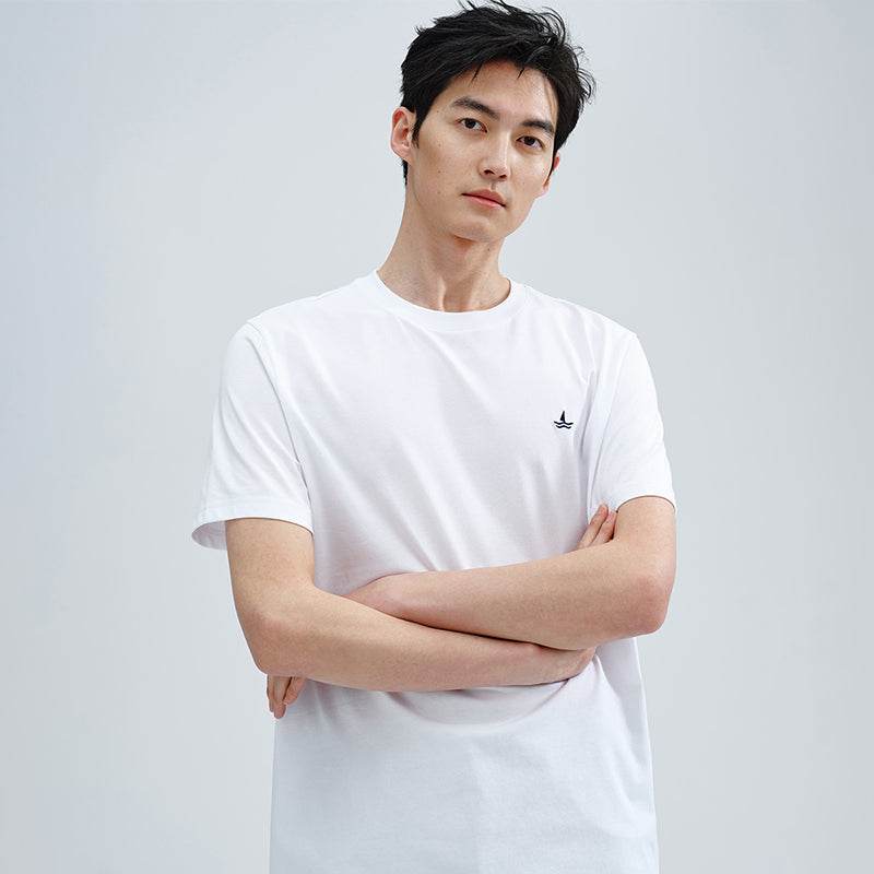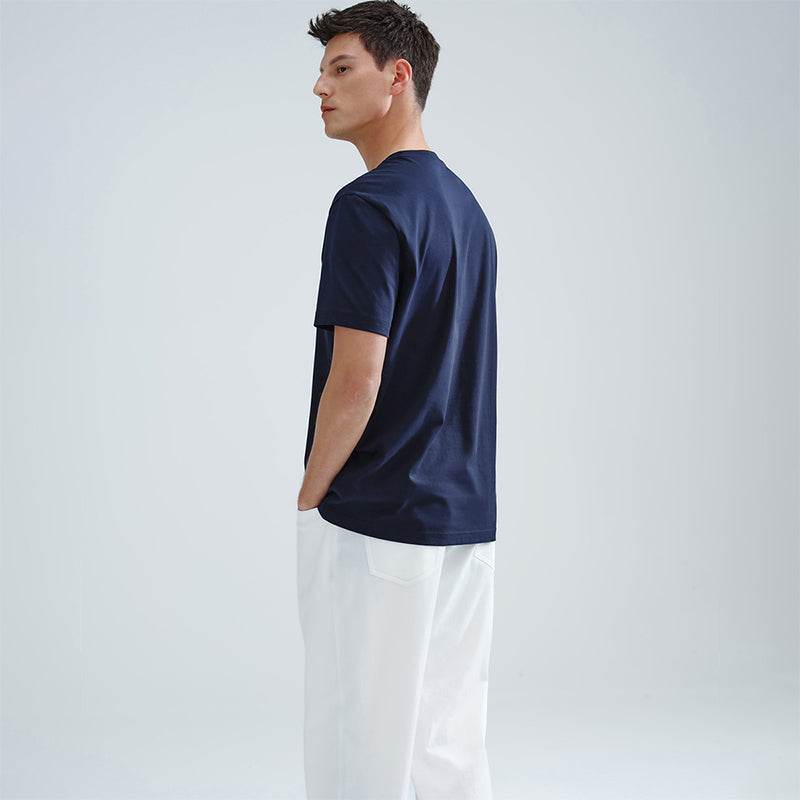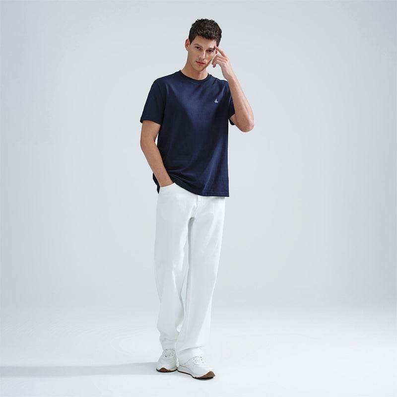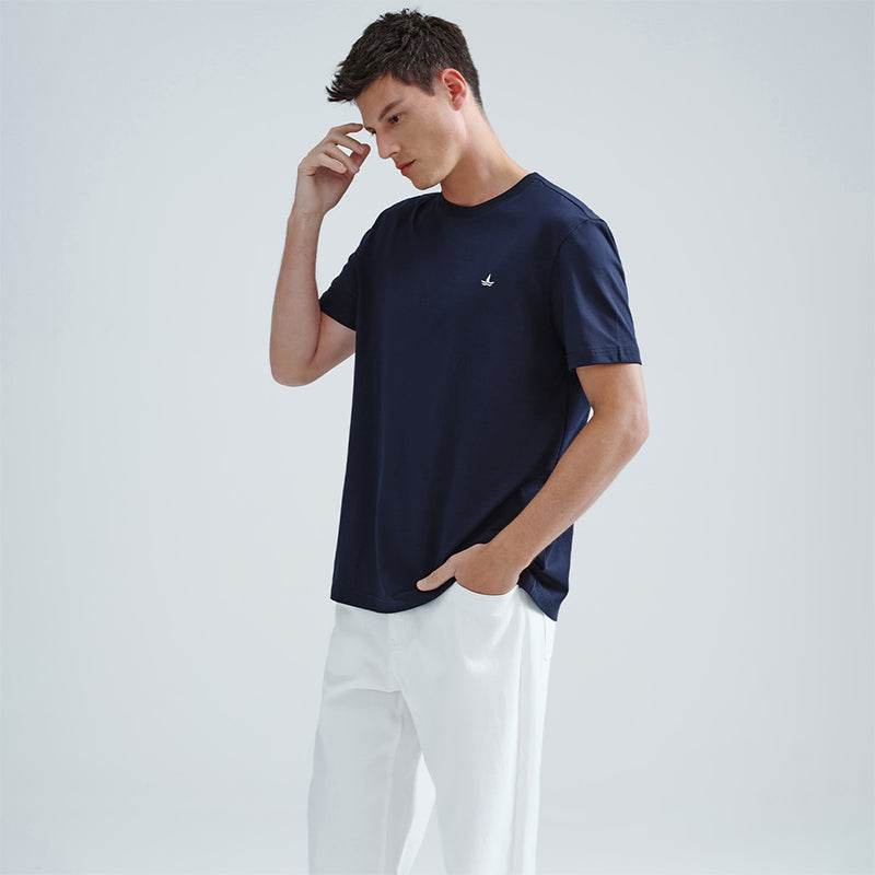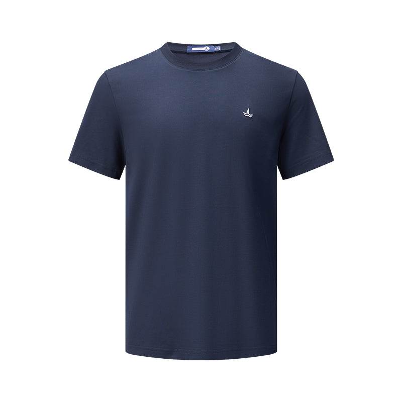 Удобная футболка из мягкого хлопка с круглым вырезом и короткими рукавами, выполненная в дышащем и освежающем дизайне. Идеально подходит для летней носки, сочетая стиль и комфорт.