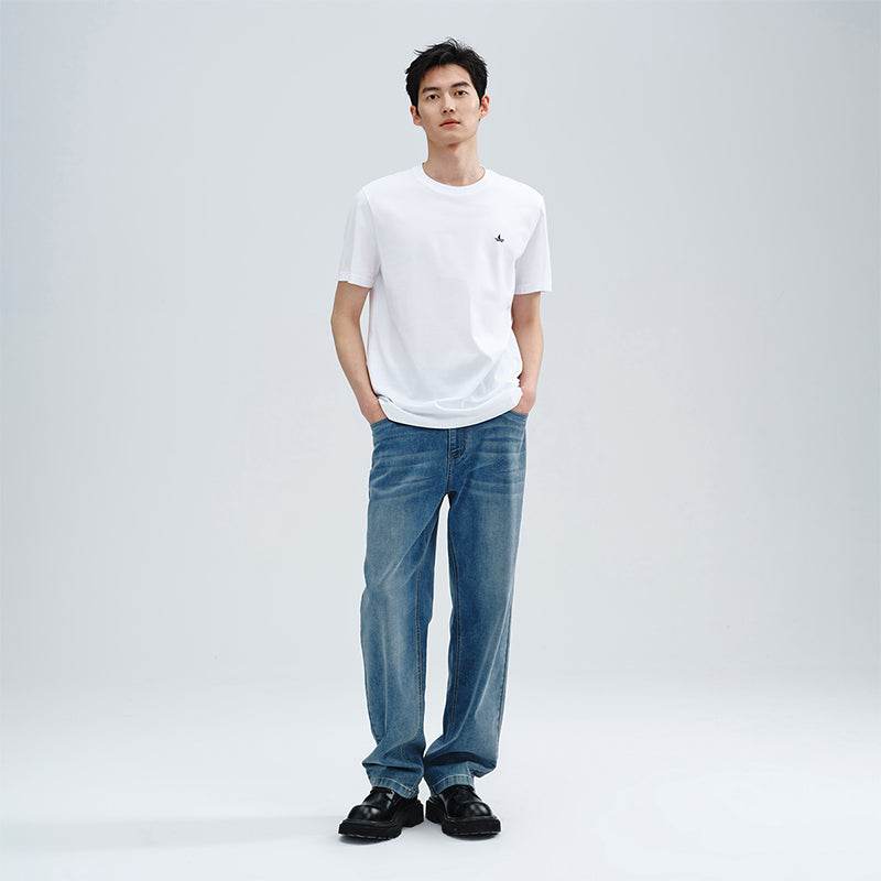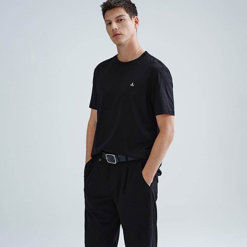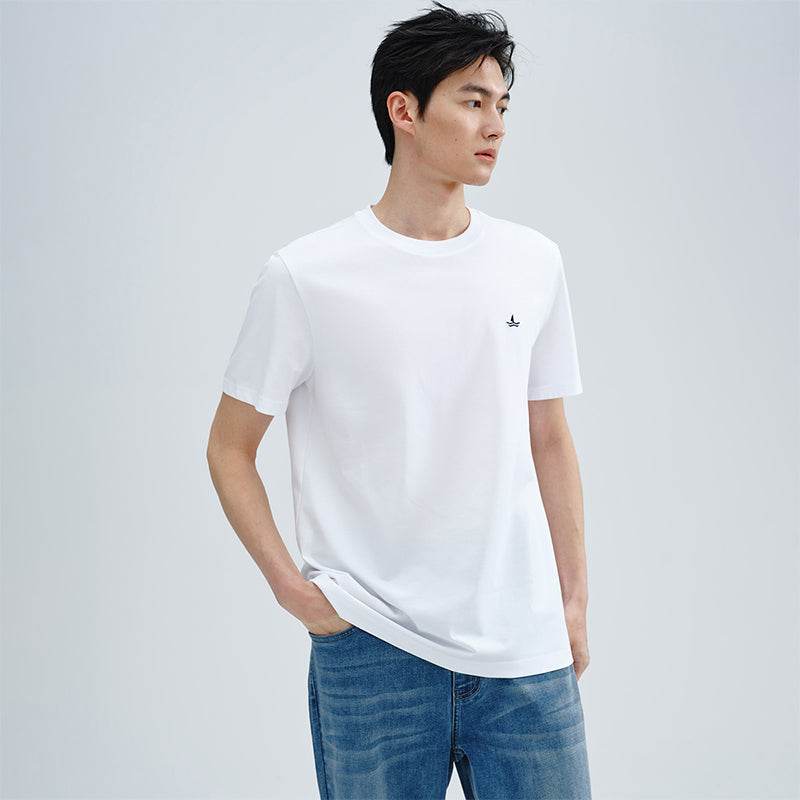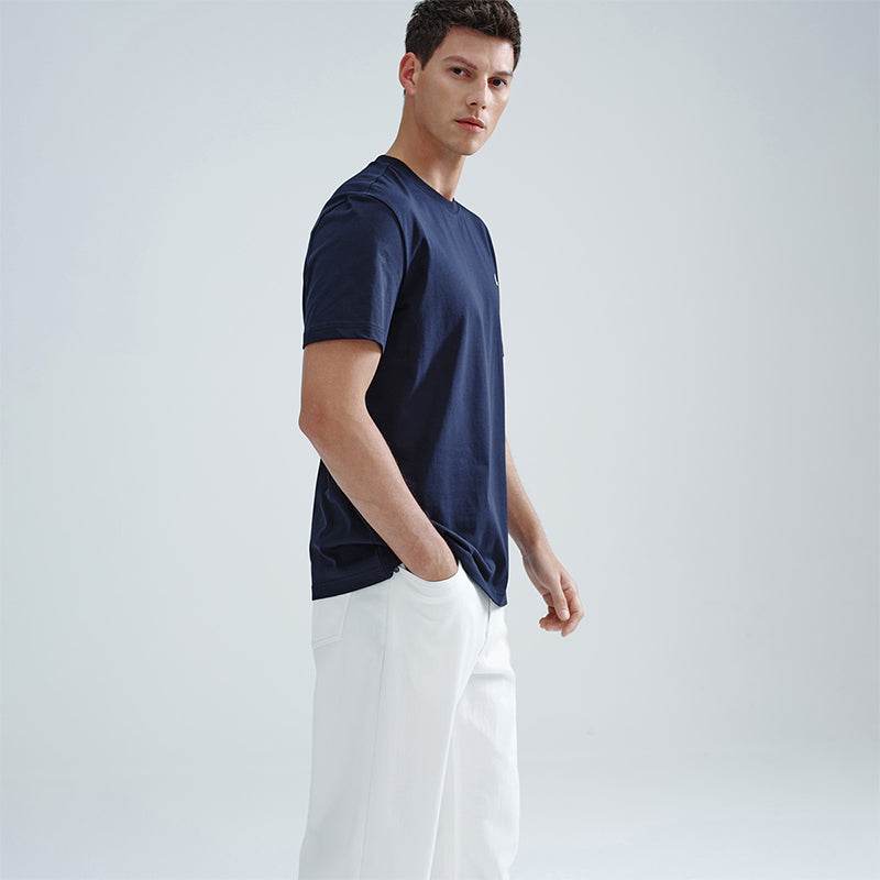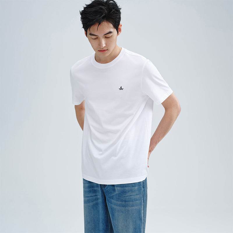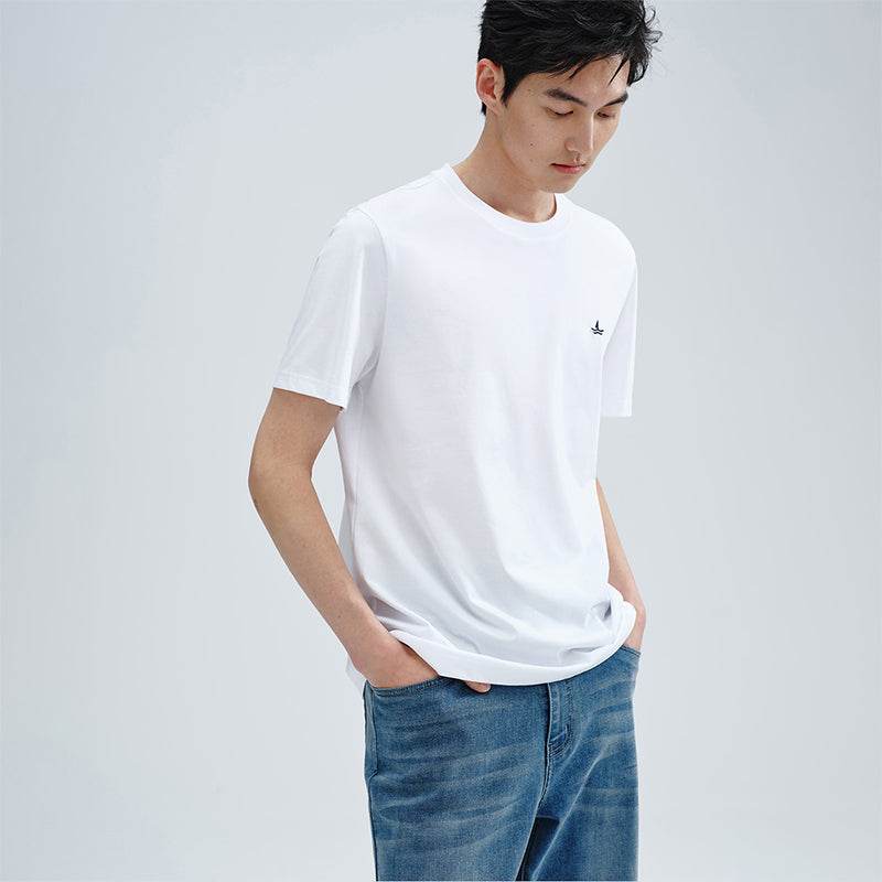 Удобная футболка из мягкого хлопка с круглым вырезом и короткими рукавами, выполненная в дышащем и освежающем дизайне. Идеально подходит для летней носки, сочетая стиль и комфорт.
