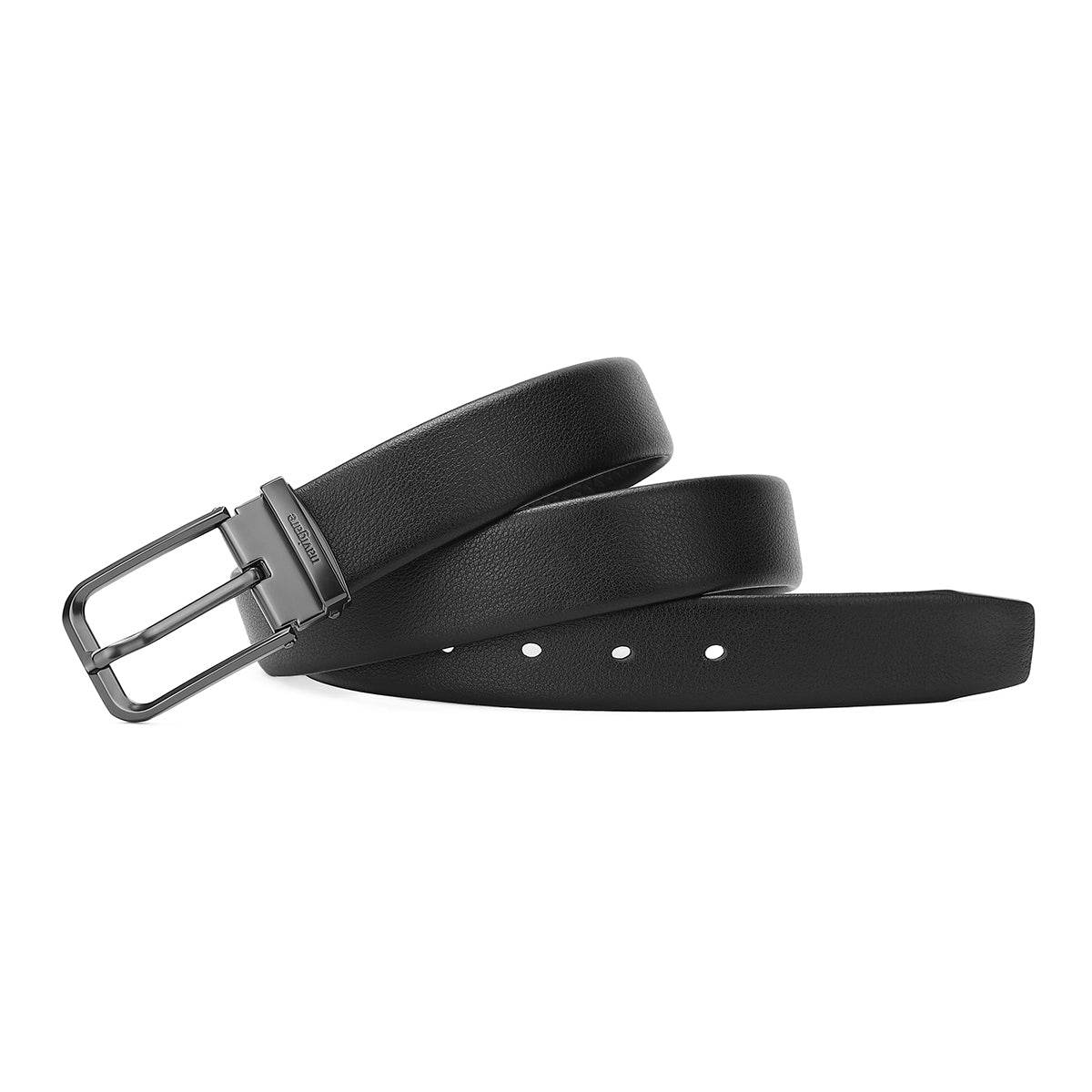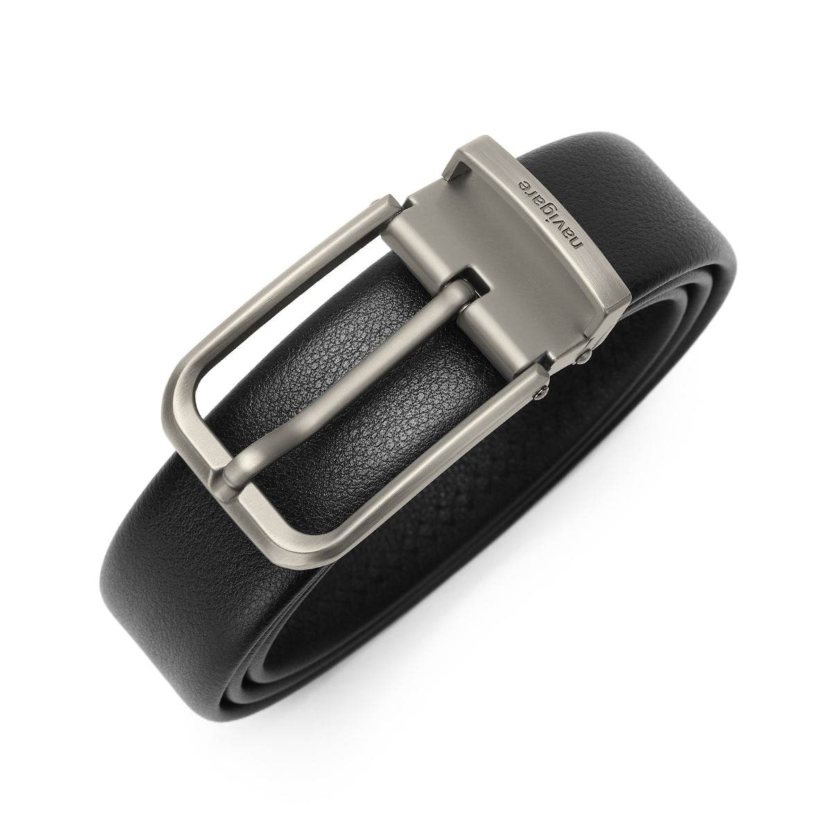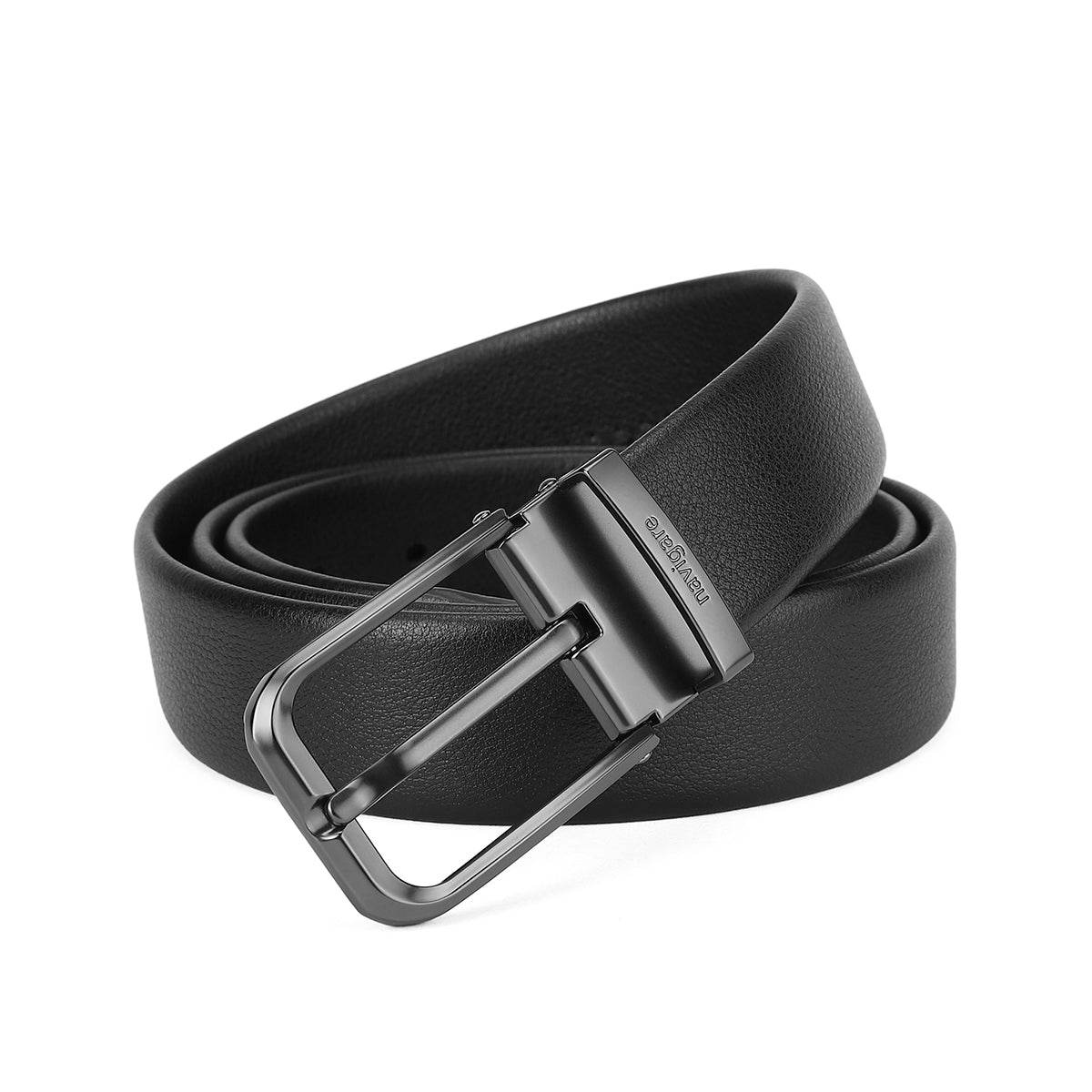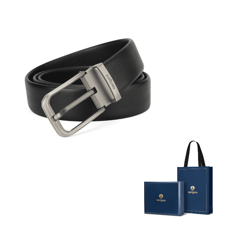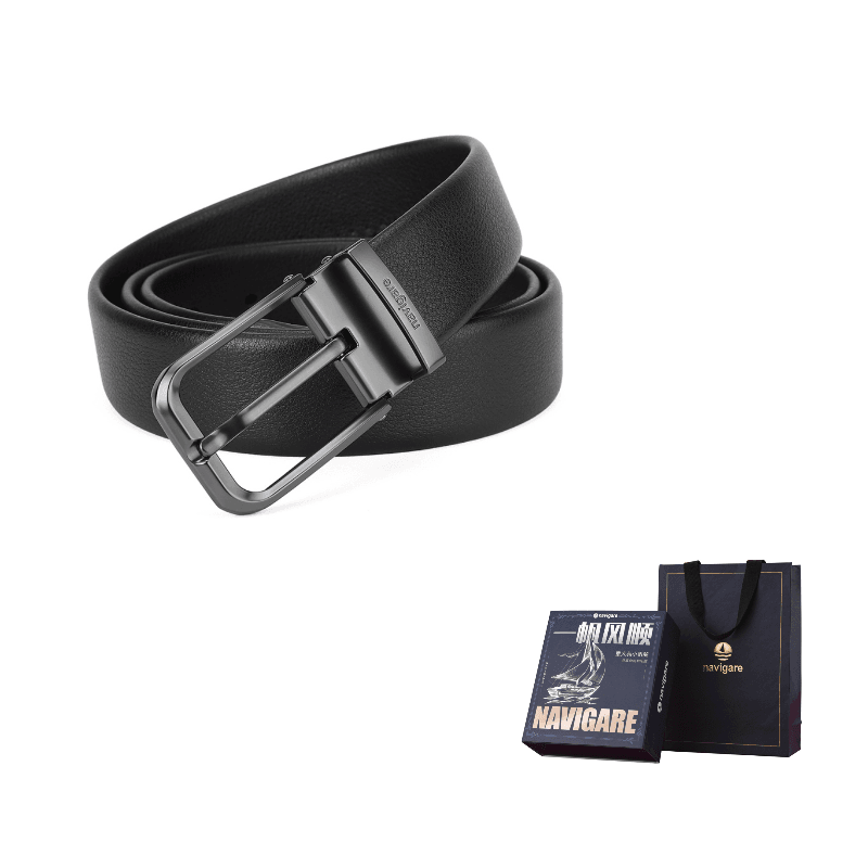 Стильный ремень из коровьей кожи с пряжкой на булавке в черном цвете. Ширина 3,4 см, идеально подходит для создания элегантного образа. Подарочная упаковка делает его прекрасным вариантом для подарка.