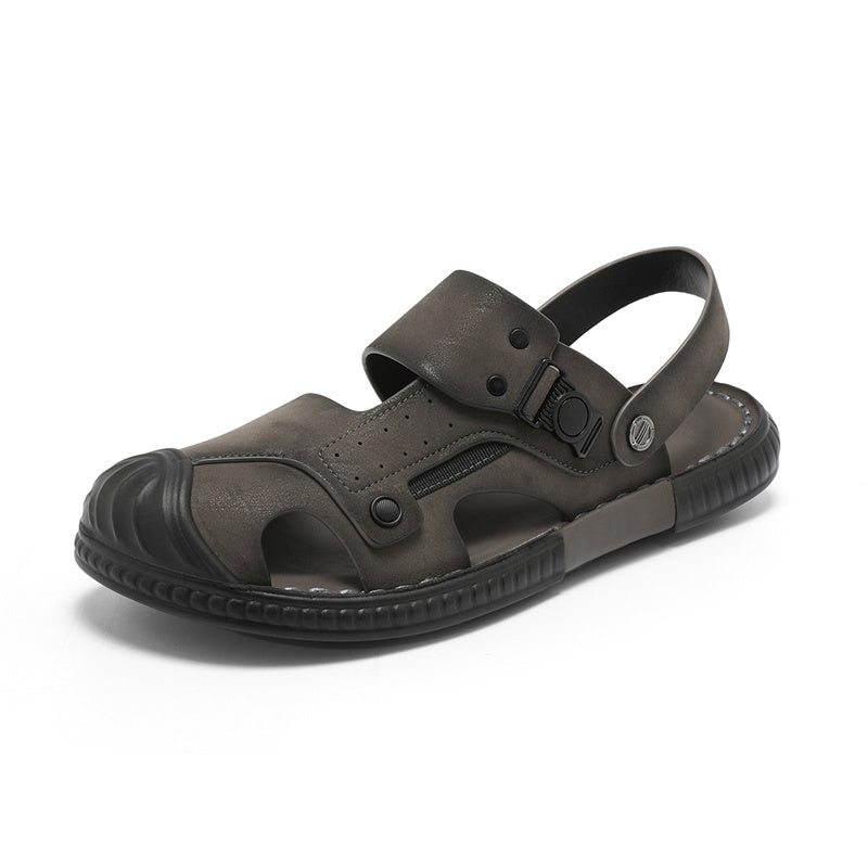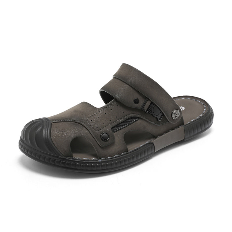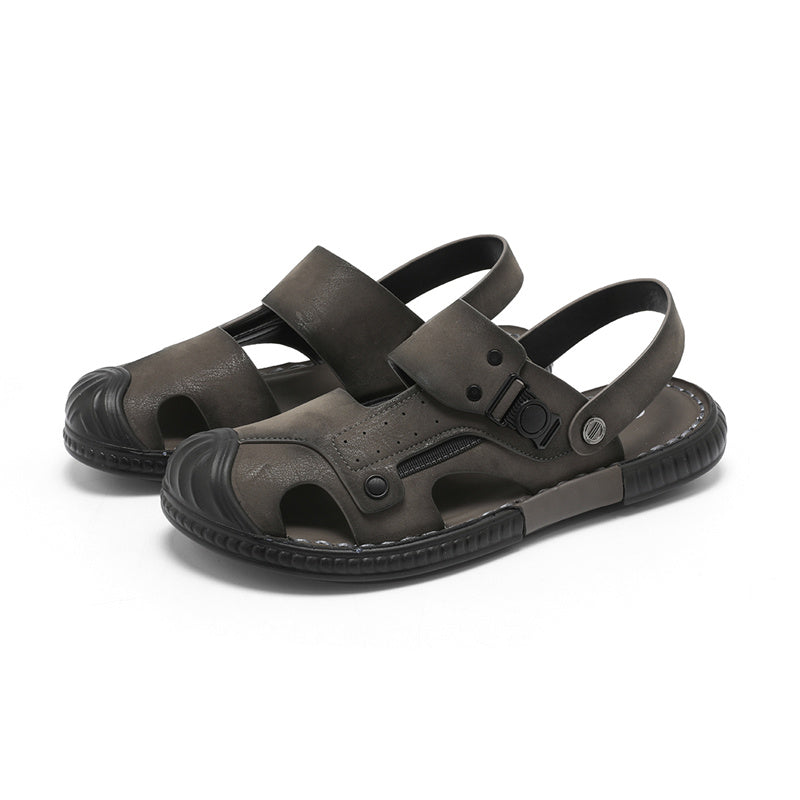 Стильные и комфортные пляжные сандалии в ретро-стиле из искусственной кожи. Модель с закрытым носком, без застежки (слип-он) на легкой полиуретановой подошве идеально подходит для летнего отдыха.