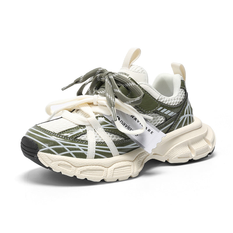 Детские низкие кроссовки с вентилируемой сетчатой поверхностью и удобной застежкой на липучке. Модель на стильной утолщенной подошве с круглым носком отличается легким дизайном и комфортом для повседневной носки.