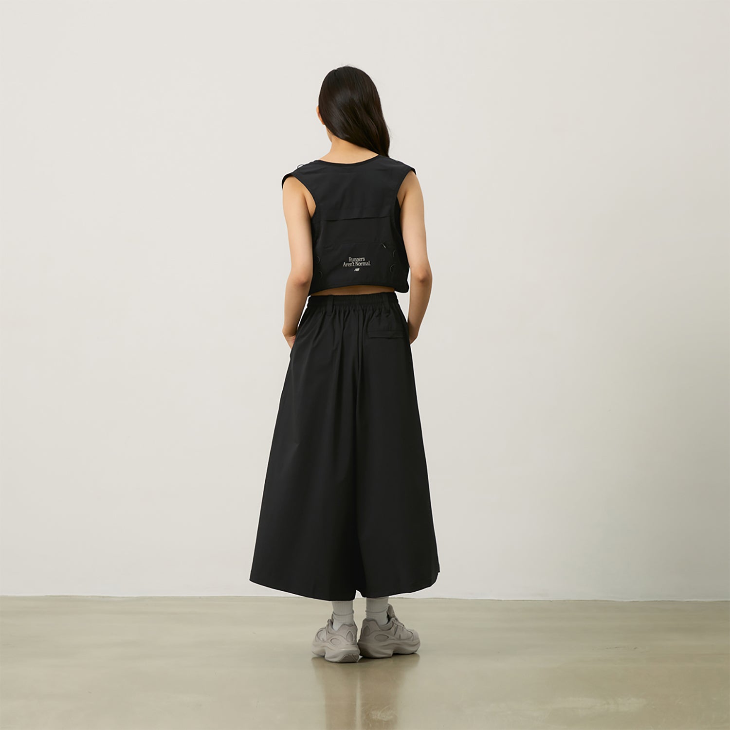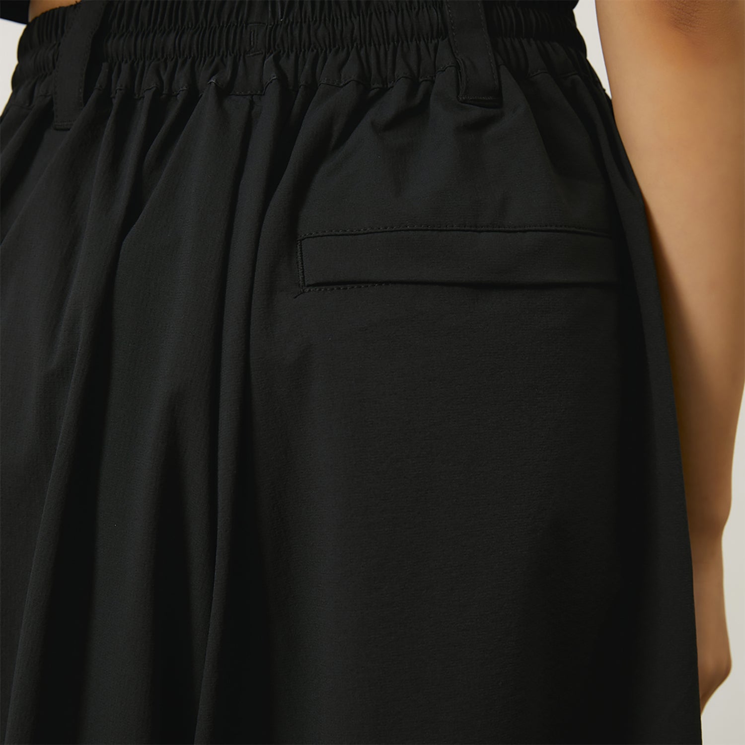 Спортивные брюки свободного кроя с широкими штанинами из эластичной нейлоновой ткани. Модель с частичным эластичным поясом и длиной 7/8 обеспечивает легкость и комфорт в жаркую погоду.