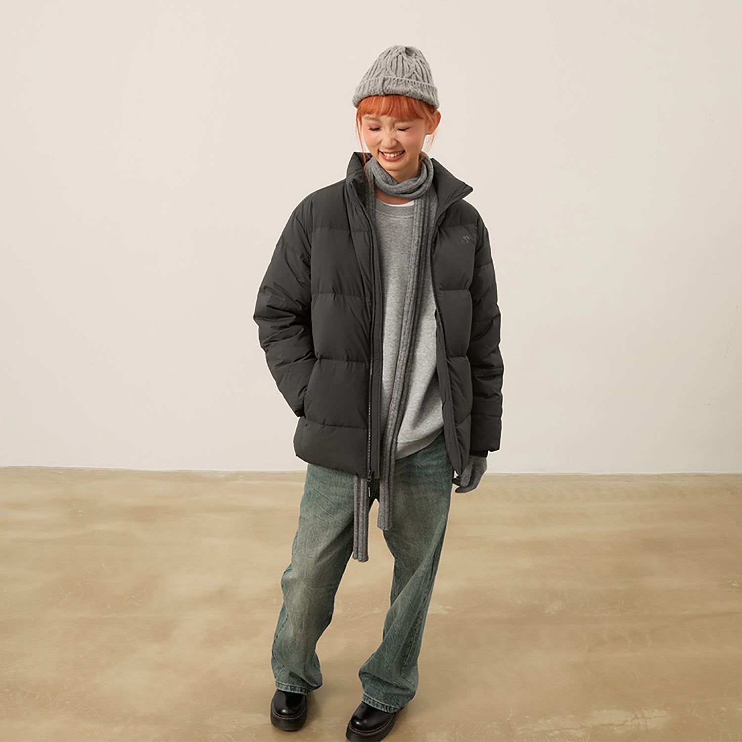 Базовый пуховик «бомбер» с воротником-стойкой, спущенным плечом и небольшим логотипом. Облегающая модель из нейлона с эластаном, наполненная утиным пухом, обеспечивает тепло и подходит для городской носки.