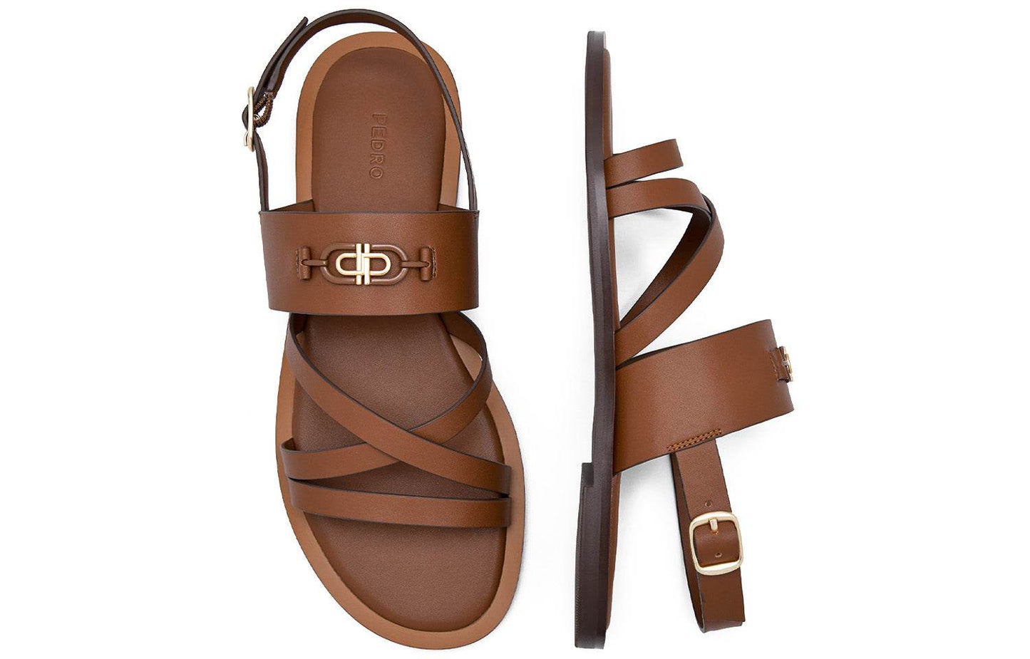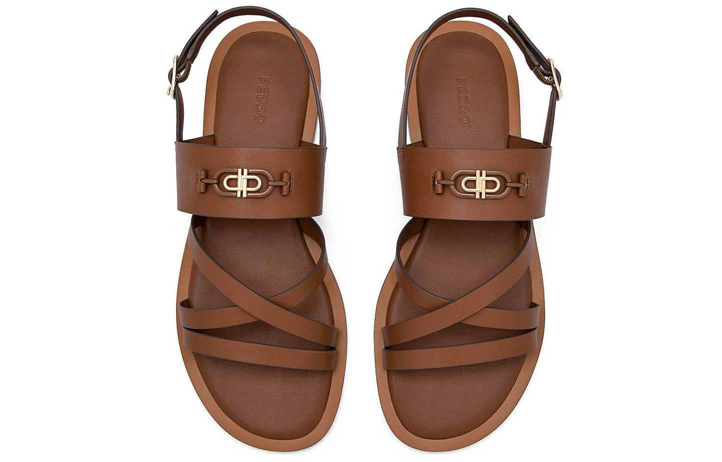 Сандалии из серии Icon компании Pedro выполнены с крестовидными ремешками и однобуквенной застежкой. Модель с удобной плоской подошвой идеально подходит для повседневного ношения, обеспечивая комфорт и стильный внешний вид в тёплую погоду.