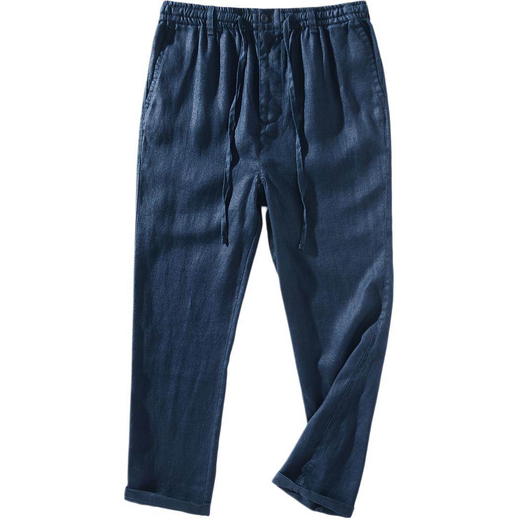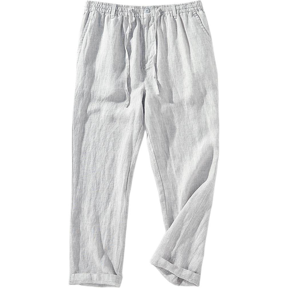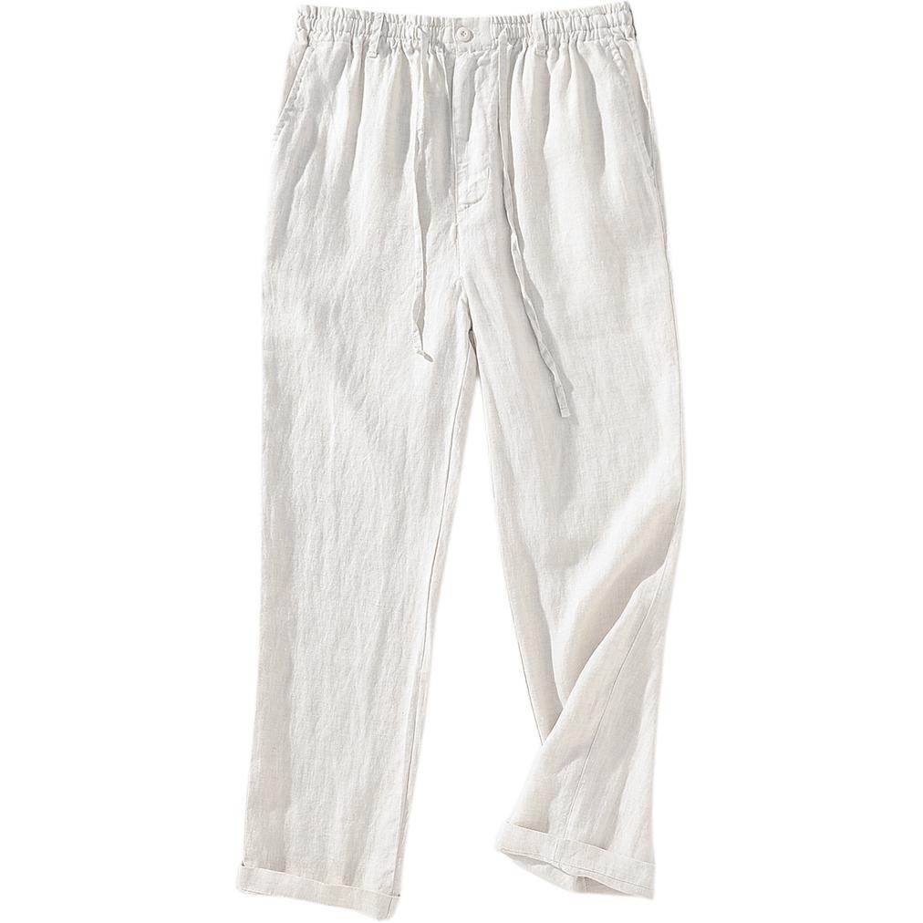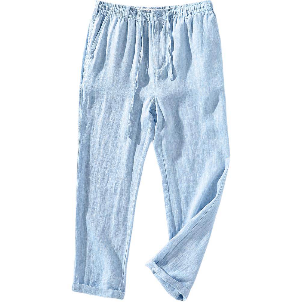 Эти льняные брюки выполнены в однотонном дизайне и имеют прямые ноги со средней талией. Они универсальны и идеально подходят для повседневного ношения или офисных мероприятий. Удобная и эластичная ткань обеспечивает комфорт в движениях, придавая стилю элегантность и легкость. Отличный выбор для мужчин, стремящихся к стилю и качеству в своем гардеробе.