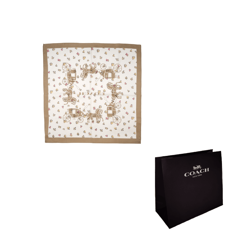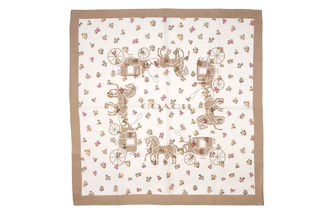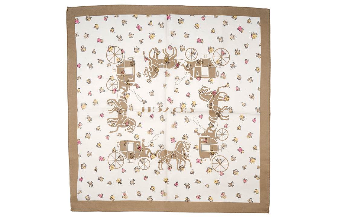 Женский квадратный шелковый платок Coach с принтом "Пони и карета" и чайными цветами в абрикосовом цвете. Этот стильный аксессуар добавит элегантности и яркости любому наряду. Мягкий и легкий, он идеально подходит для носки в любое время года.