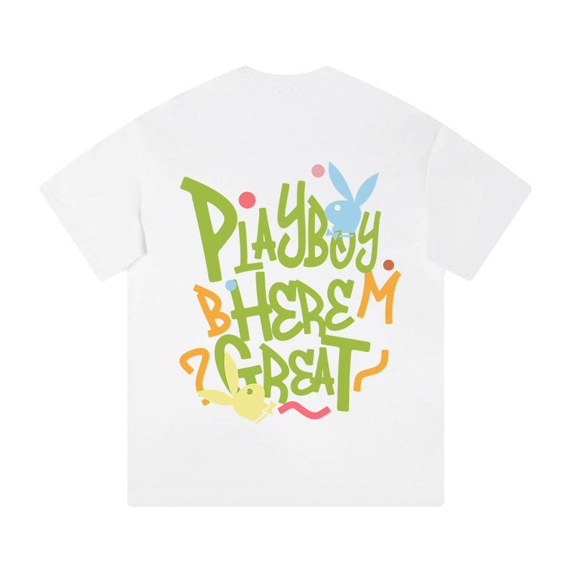 Мужская футболка Playboy свободного кроя с короткими рукавами и круглым вырезом. Лёгкая и комфортная модель с принтом на спине подходит для повседневного гардероба и летнего отдыха.