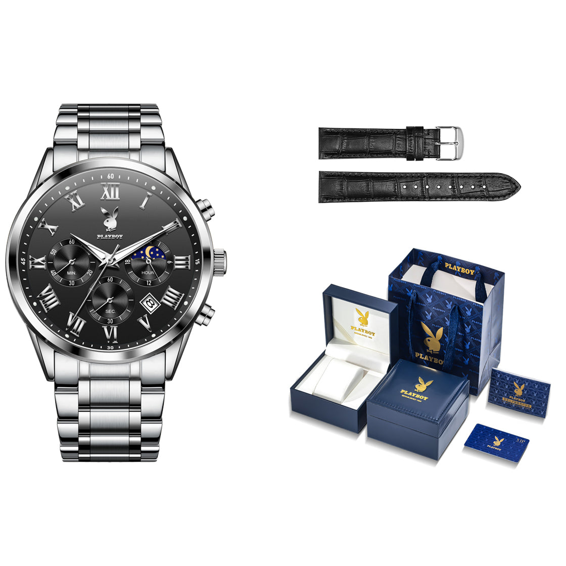 Мужские часы Playboy с кварцевым механизмом и стальным браслетом, сочетающие стильный дизайн и функциональность для бизнеса и повседневной носки. Модель оснащена удобным циферблатом и прочной конструкцией для надежного использования.