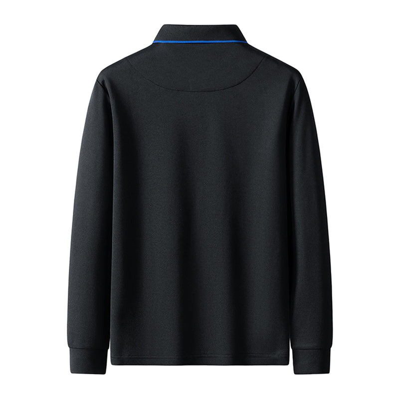 Мужской лонгслив с отложным воротником, выполненный из 100% полиэстера. Идеален для легкого бизнеса и повседневного ношения, с комфортным и свободным кроем.