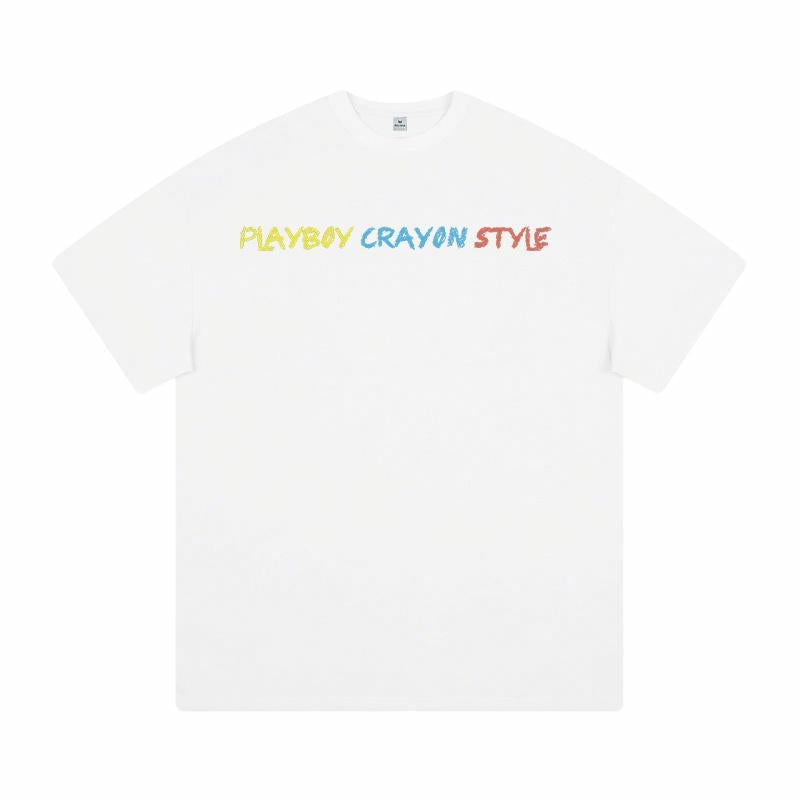 Футболка Playboy с короткими рукавами и круглым вырезом, украшенная принтом с зайцем на спине. Свободная и лёгкая модель обеспечивает комфорт и подходит для повседневной носки в тёплое время года.