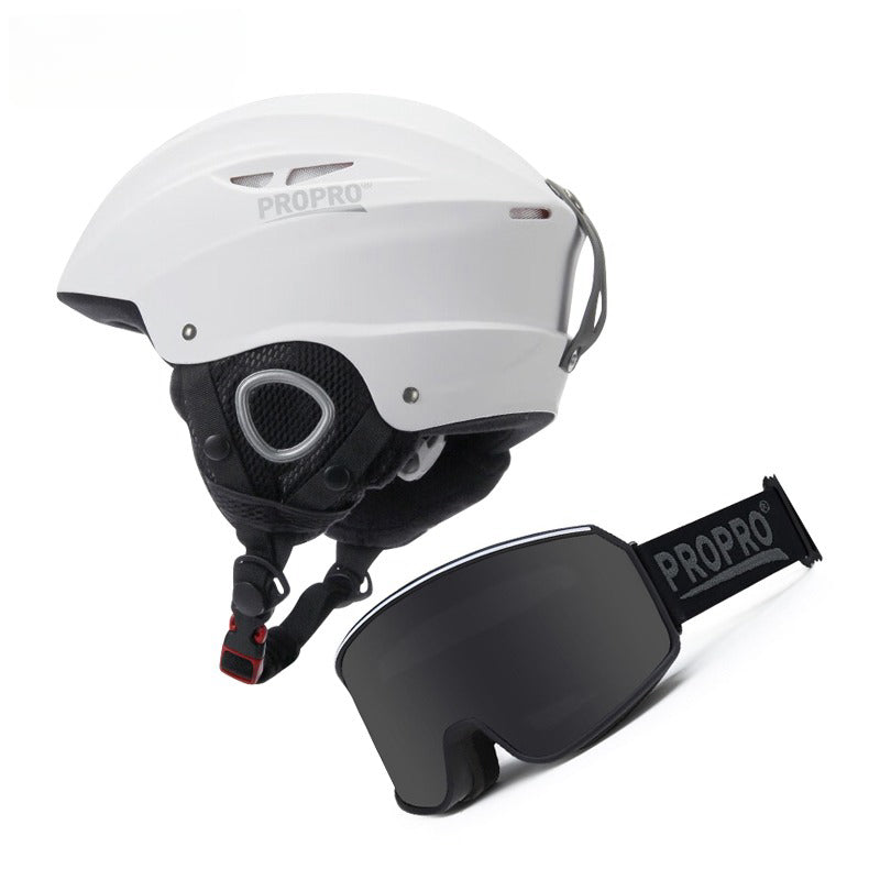 Комплект лыжного снаряжения для взрослых, включающий ABS-шлем и защитные очки, обеспечивает комфорт, вентиляцию и защиту головы при катании. Подходит для мужчин и женщин.