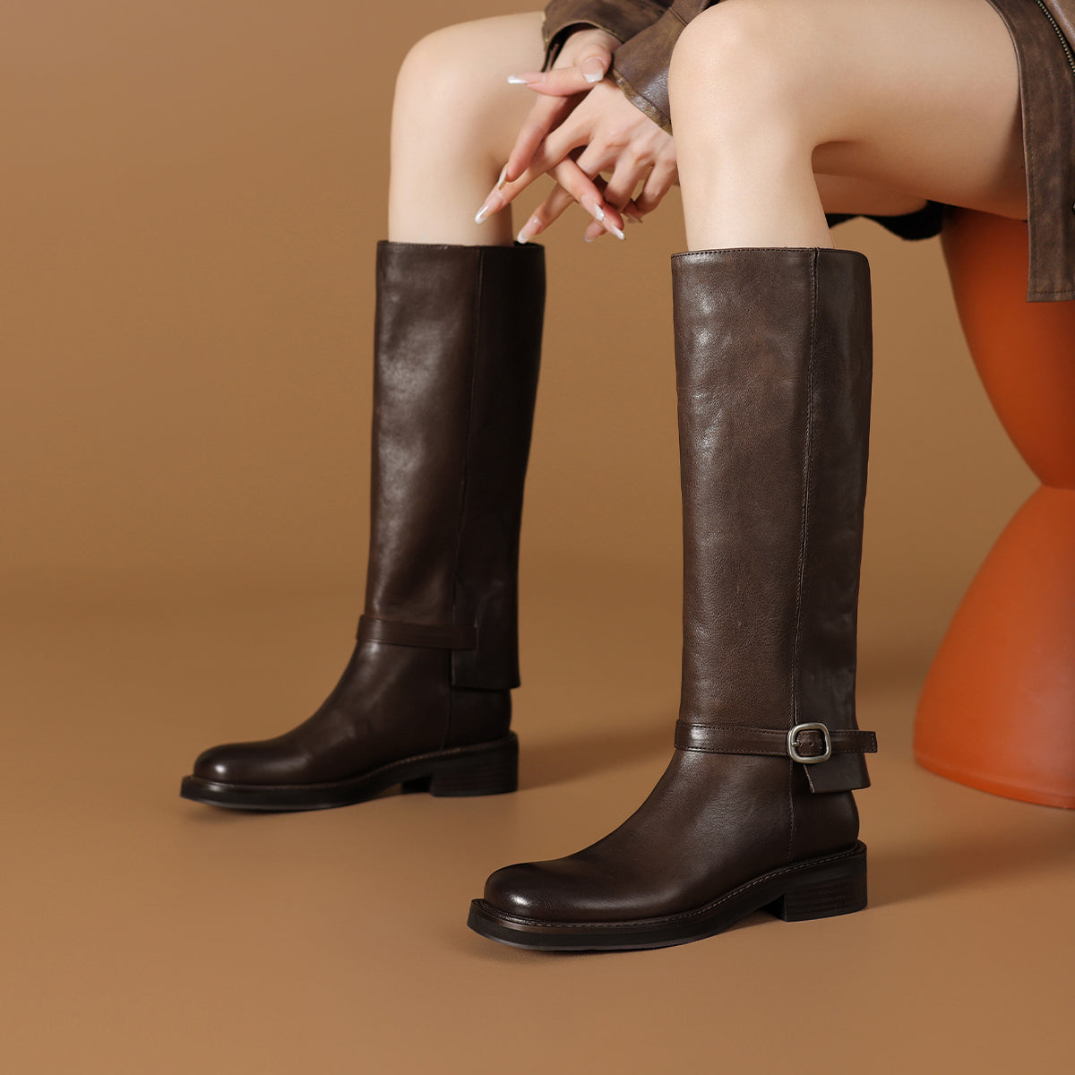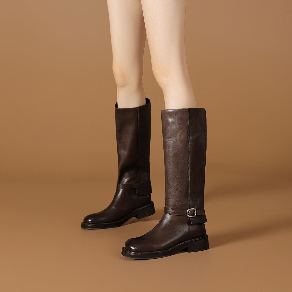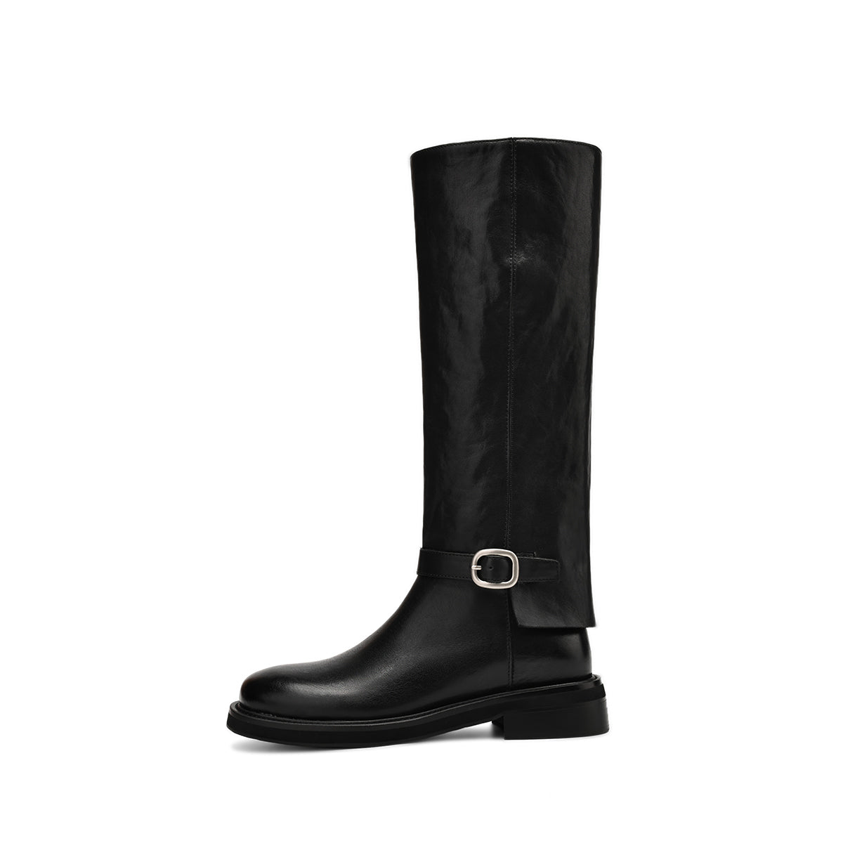 Высокие элегантные сапоги с каблуком 3,4 см, выполненные из коровьей кожи. Идеальны для создания стильного и утонченного образа с брюками или юбками.