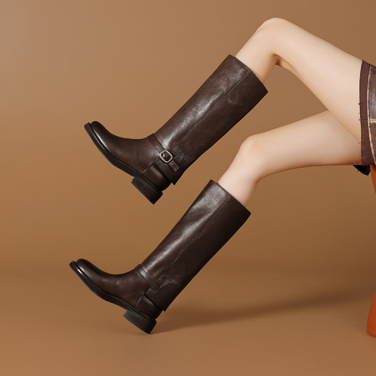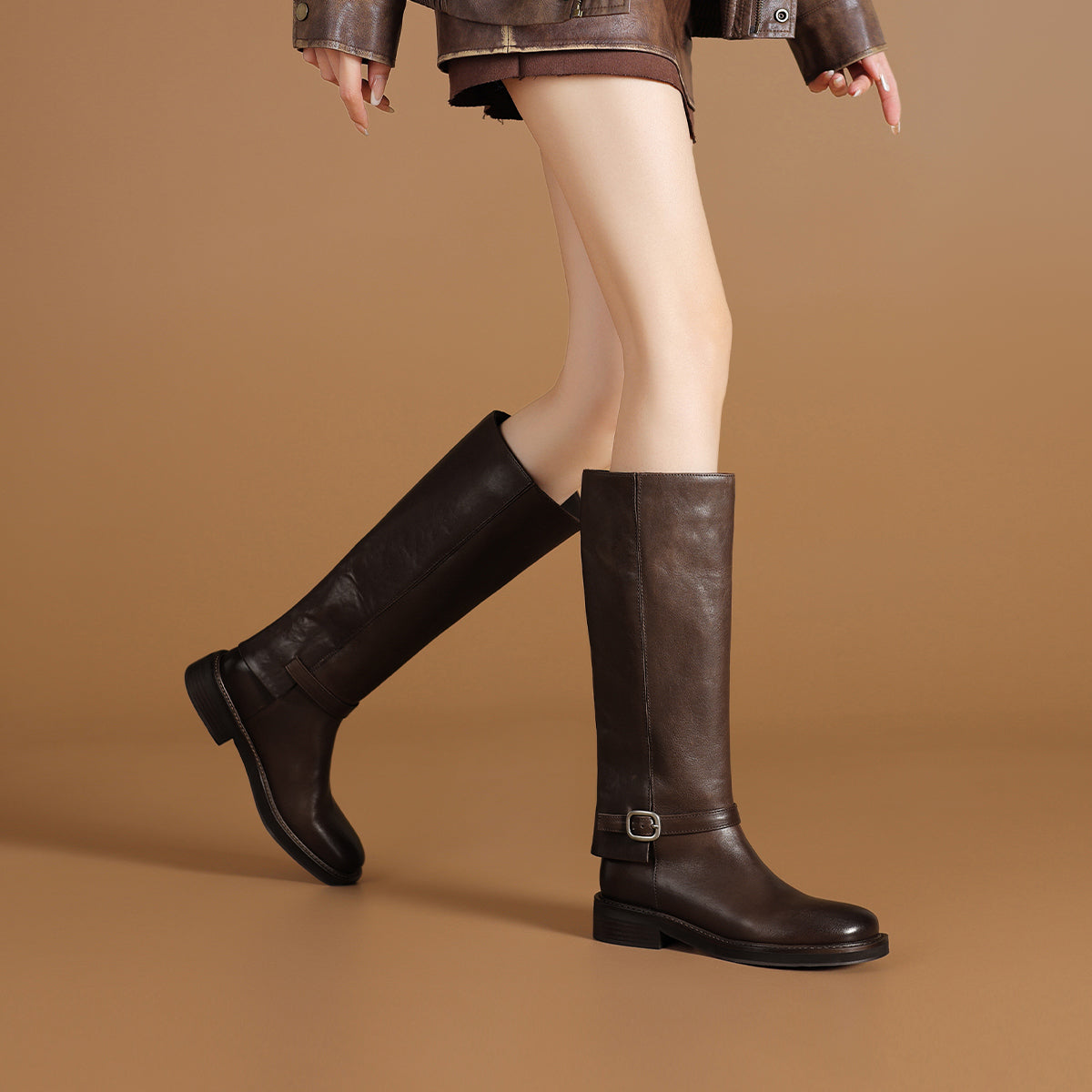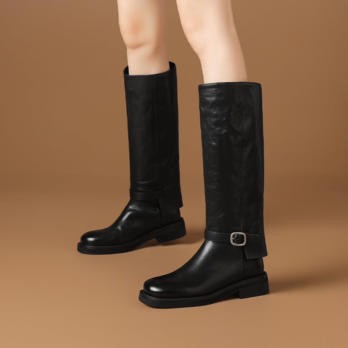 Высокие элегантные сапоги с каблуком 3,4 см, выполненные из коровьей кожи. Идеальны для создания стильного и утонченного образа с брюками или юбками.