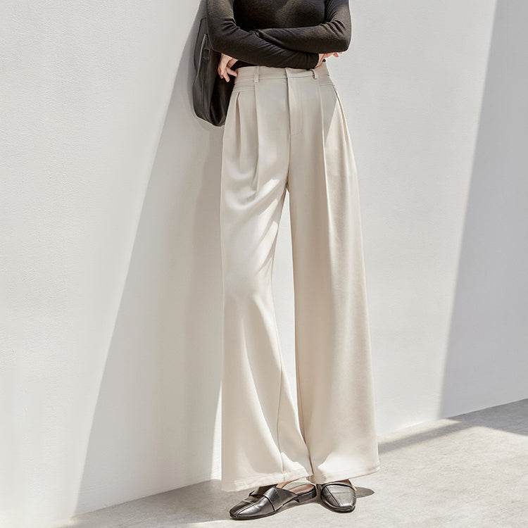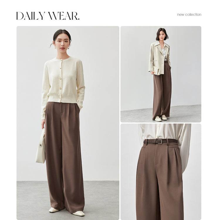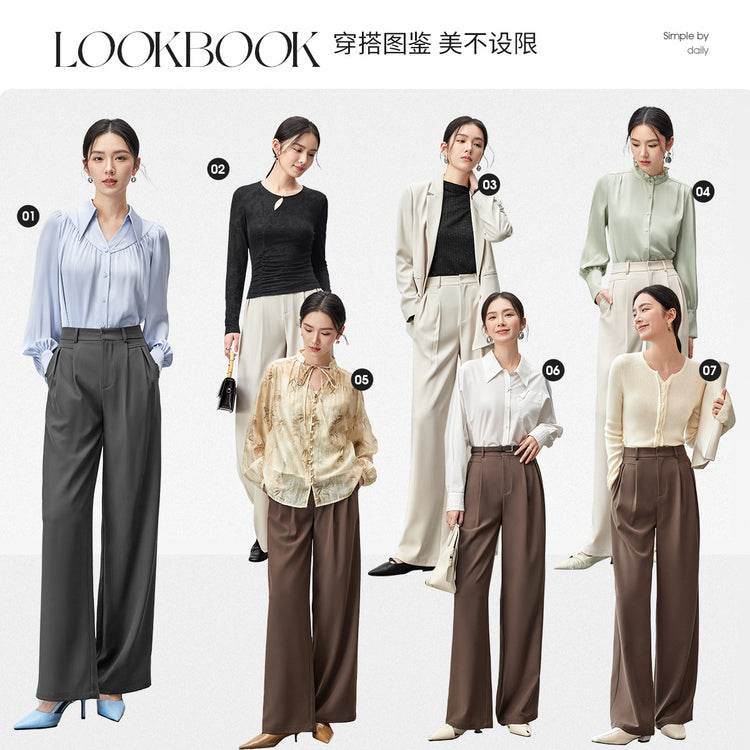 Удобные повседневные брюки с широкими ногами и плиссированным дизайном в елочку. Эластичный пояс сзади обеспечивает комфортную посадку, идеально подходят для офисных и повседневных образов.